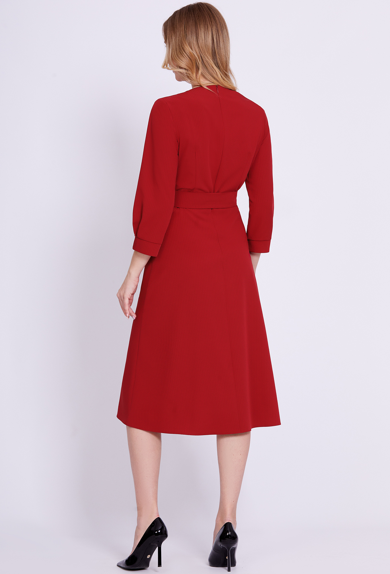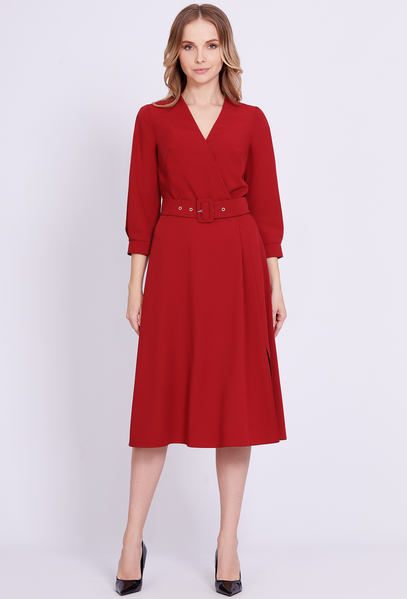 Модель: Солеи 3816 красный Рост: ..показать170 см (девушка на фото ростом 170см) Сезон: Круглогодичный Тип ткани: 65% полиэстер, 32% вискоза, 3% эластанПлатье-миди интересного кроя полуприлегающего силуэта, отрезное по линии талии и лифом на запах. Перед с V-образным вырезом горловины и косыми нагрудными вытачками в верхней части, вертикальным швом с разрезом и складкой по нижней части. В среднем шве спинки обработана потайная молния. Рукава втачные одношовные со встречными складками по низу и притачными манжетами.