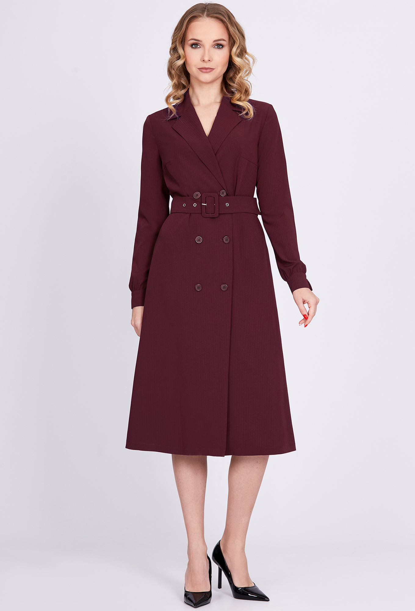 Модель: Солеи 4028 бордо Рост: 17..показать0 см (девушка на фото ростом 170см) Сезон: Круглогодичный Тип ткани: 65% полиэстер, 32% вискоза, 3% эластанПлатье А-образного силуэта, перед с двубортной застежкой на петли и пуговицы, и потайные кнопки, и двумя нагрудными вытачками. Рукава втачные одношовные, сосборенные по низу, с притачными манжетами с застежкой на петли и пуговицы. Воротник отложной с лацканами. Дополняется поясом с пряжкой из основной ткани.