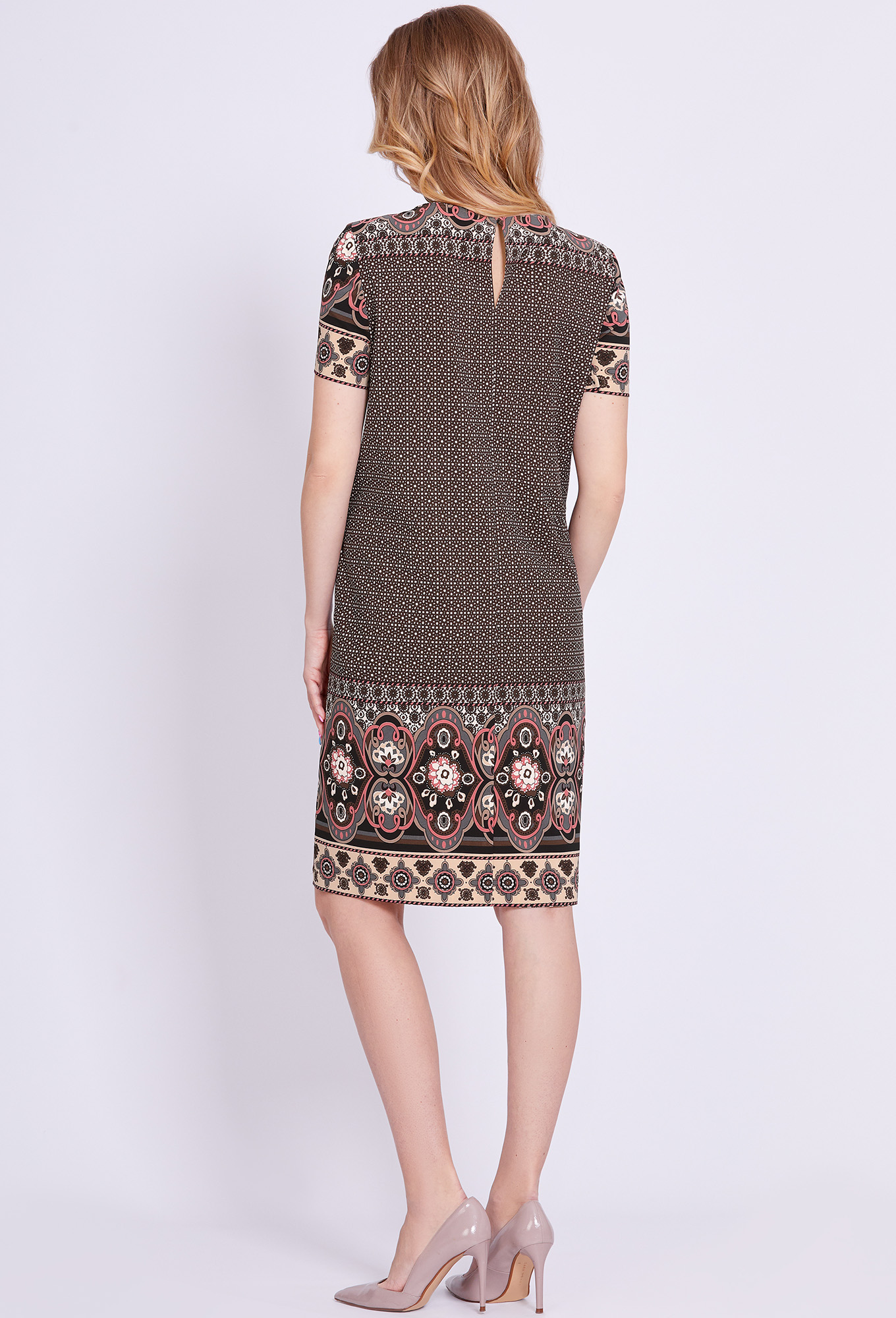 Модель: Солеи 4408 коричневый цветы <..показатьli>Рост: 170 см (девушка на фото ростом 170см) Сезон: Весна-Лето Тип ткани: 100% вискозаПлатье прямого силуэта, выполнено из ткани с ярким интересным принтом, с округлой формой горловины, втачными рукавами, в среднем шве спинки обработана застёжка на одну навесную петлю и пуговицу.
