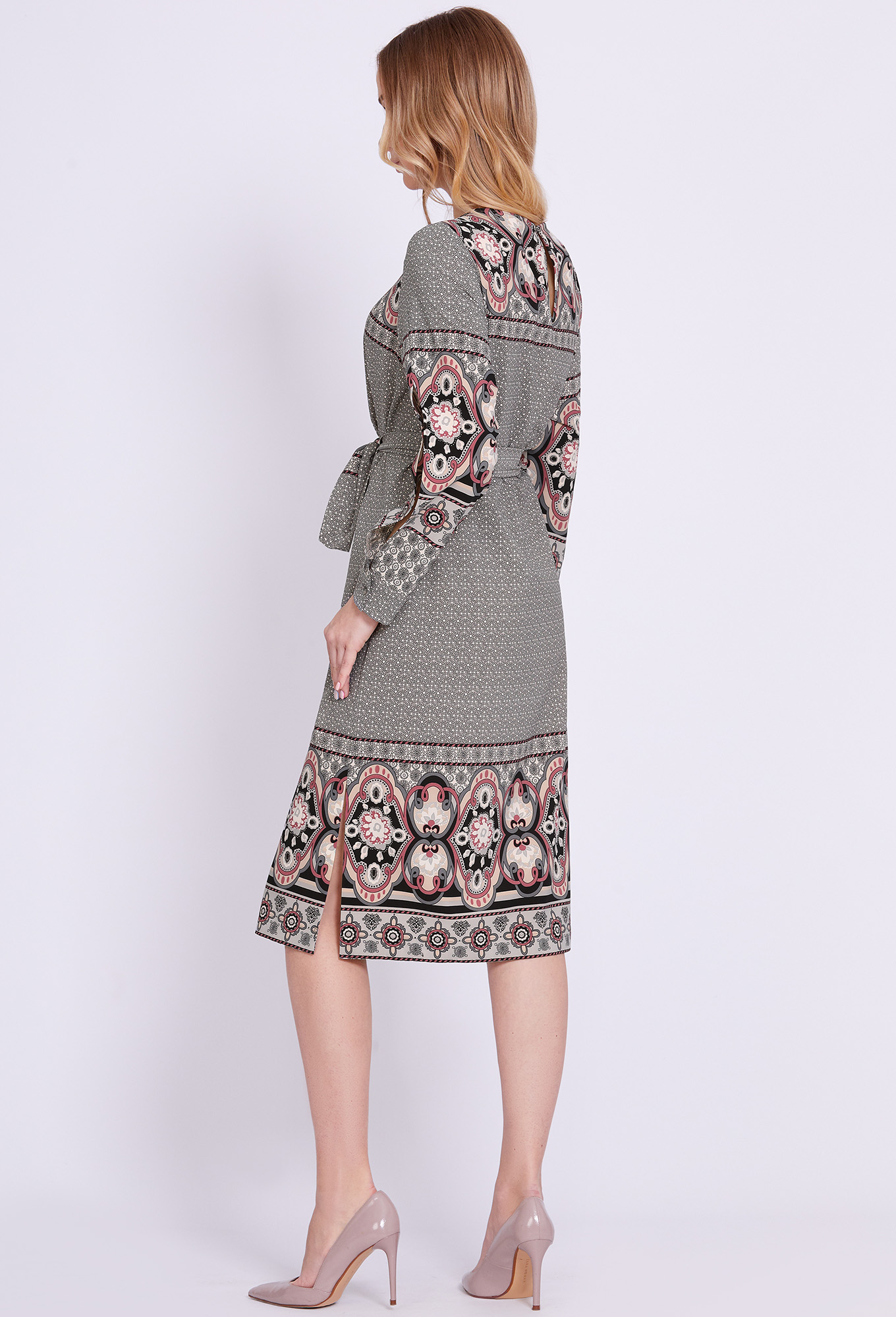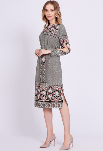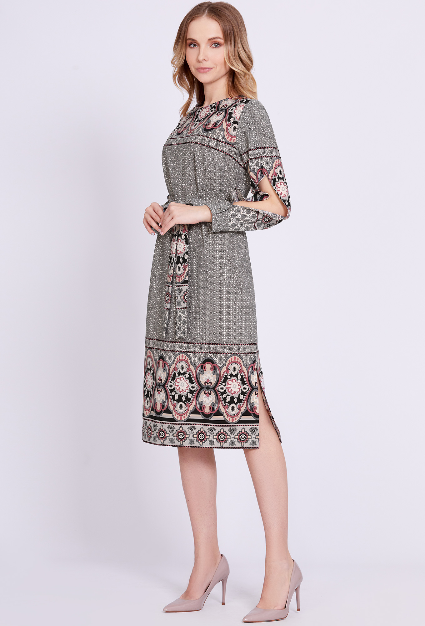 Модель: Солеи 4458 черный цветы Р..показатьост: 170 см (девушка на фото ростом 170см) Сезон: Весна-Лето Тип ткани: 100% - ВискозаДанная модель миди-платье прямого силуэта – эталон женственного образа. Правильное настроение задали при помощи стильного принта и интересного кроя рукавов с разрезами, частично приоткрывающими руки, и манжетами с отделочными пуговицами. Динамичность модели придают разрезы в боковых швах. По спинке обработана застёжка-капля с навесной петлёй и отделочной пуговицей. Сформировать приталенный силуэт помогает ремень.