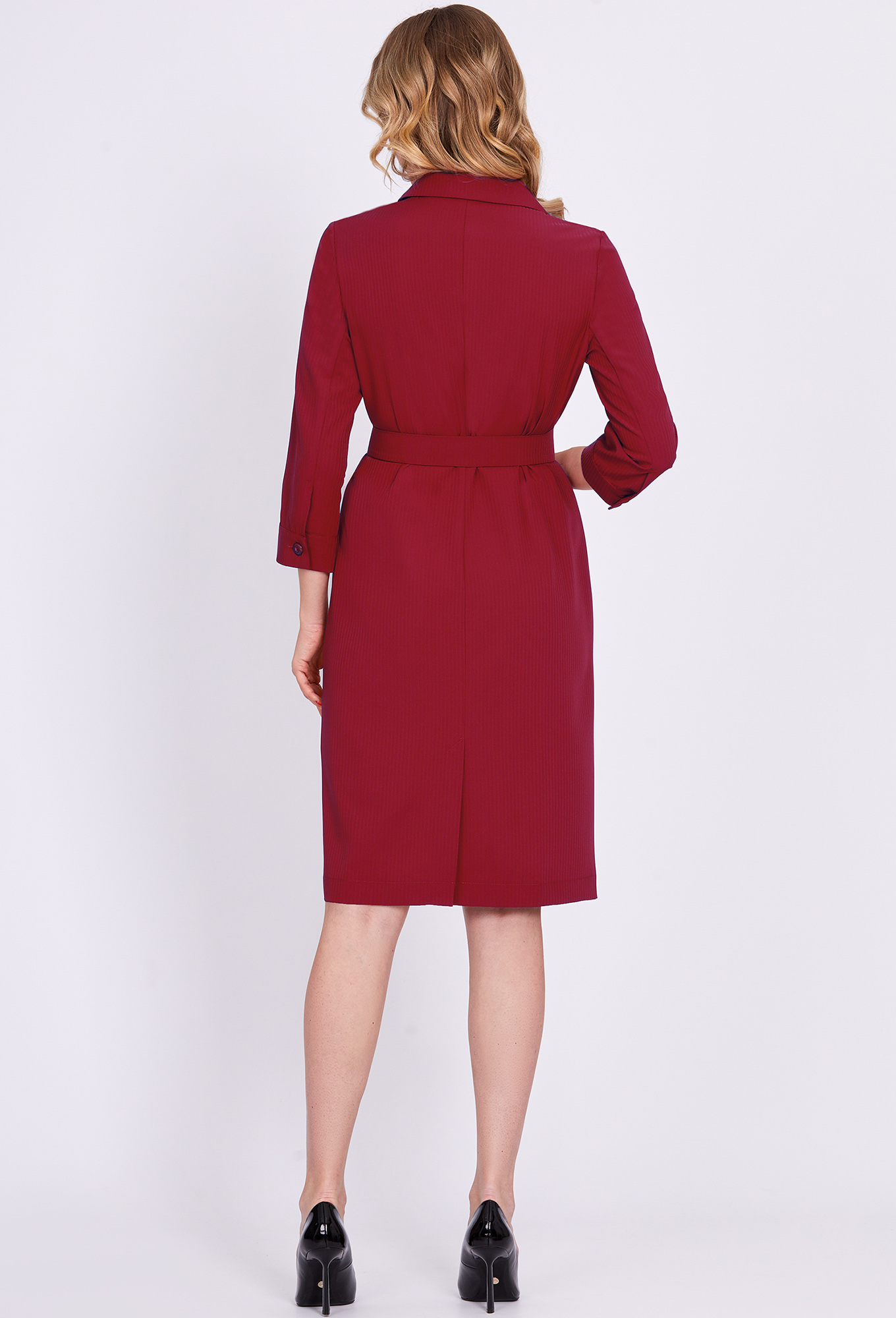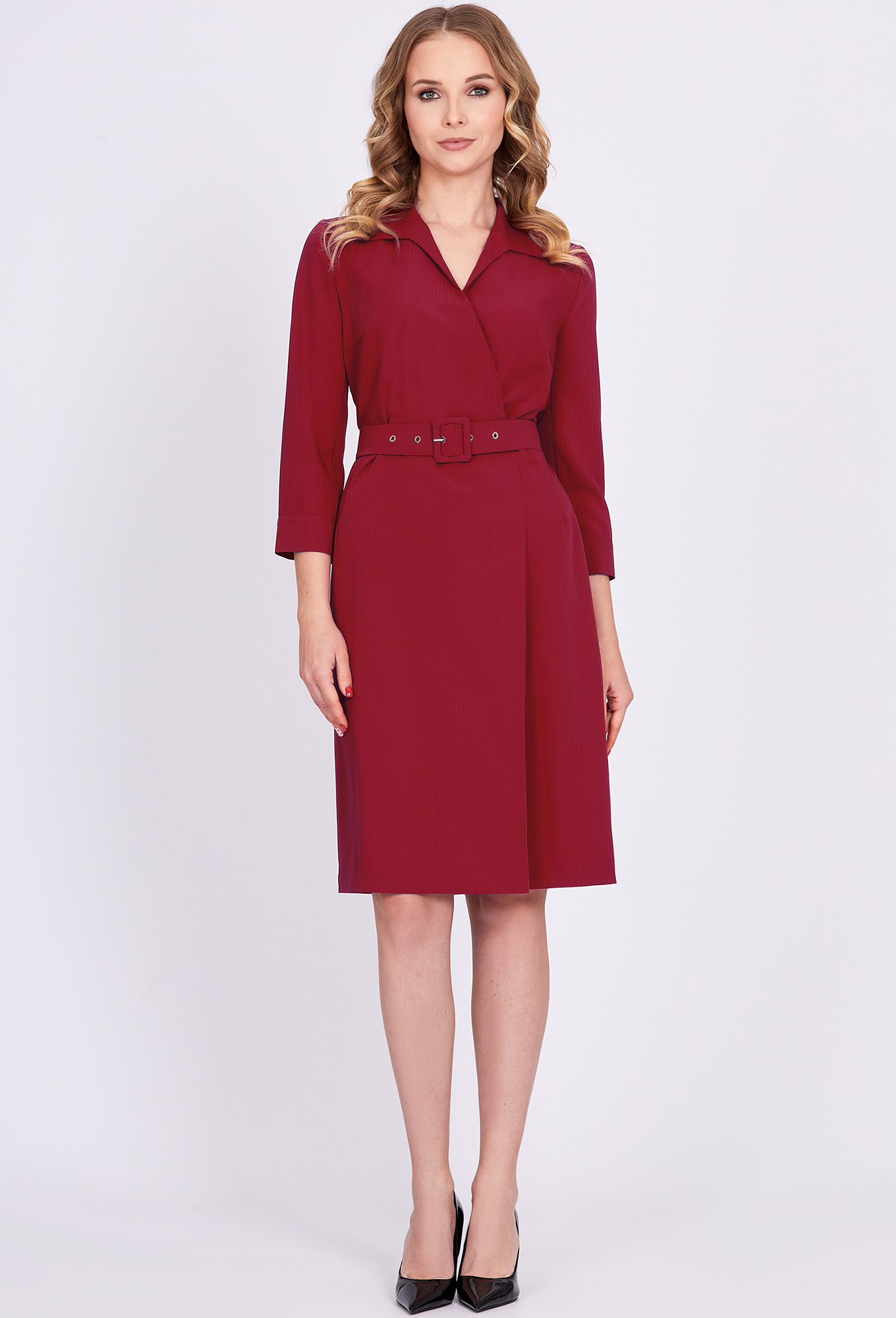 Модель: Солеи 4504 красный Рост: ..показать170 см (девушка на фото ростом 170см) Сезон: Круглогодичный Тип ткани: 65% полиэстер, 32% вискоза, 3% эластанОригинальное платье полуприлегающего силуэта, с интересными решениями кроя – отлично подойдет для делового образа. По переду платье отрезное по талии, верхняя часть платья с имитацией запаха и V-образным вырезом горловины, который способен зрительно поиграть с длиной шеи, нижняя часть со складкой, которая придаёт больше динамичности при движении. В среднем шве спинки обработана шлица. Взгляд к платью также приковывают воротник-апаш фигурной формы и укороченные втачные рукава с манжетами и отделочными пуговицами. Линию талии красиво подчёркивает пояс-ремень из основной ткани.