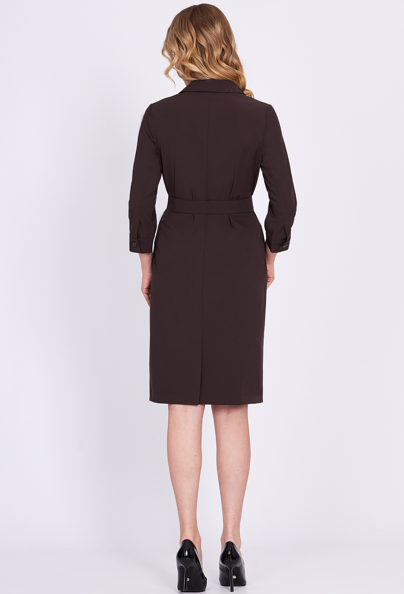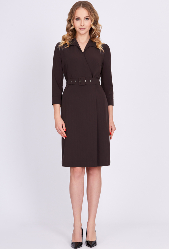 Модель: Солеи 4504 шоколад Рост: ..показать170 см (девушка на фото ростом 170см) Сезон: Круглогодичный Тип ткани: 65% полиэстер, 32% вискоза, 3% эластанОригинальное платье полуприлегающего силуэта, с интересными решениями кроя – отлично подойдет для делового образа. По переду платье отрезное по талии, верхняя часть платья с имитацией запаха и V-образным вырезом горловины, который способен зрительно поиграть с длиной шеи, нижняя часть со складкой, которая придаёт больше динамичности при движении. В среднем шве спинки обработана шлица. Взгляд к платью также приковывают воротник-апаш фигурной формы и укороченные втачные рукава с манжетами и отделочными пуговицами. Линию талии красиво подчёркивает пояс-ремень из основной ткани.