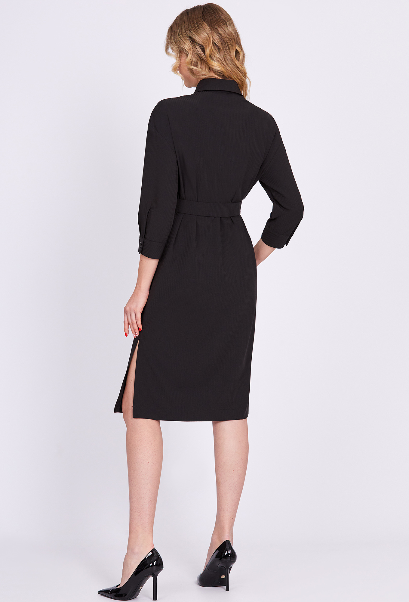 Модель: Солеи 4515 черный Рост: 1..показать70 см (девушка на фото ростом 170см) Сезон: Круглогодичный Тип ткани: 65% полиэстер, 32% вискоза, 3% эластанПеред платья с накладными карманами с клапанами и застёжкой на петли и пуговицы. Лёгкость платью придают укороченные рукава с притачными манжетами и разрезы в боковых швах. Воротник отложной с отрезной стойкой.