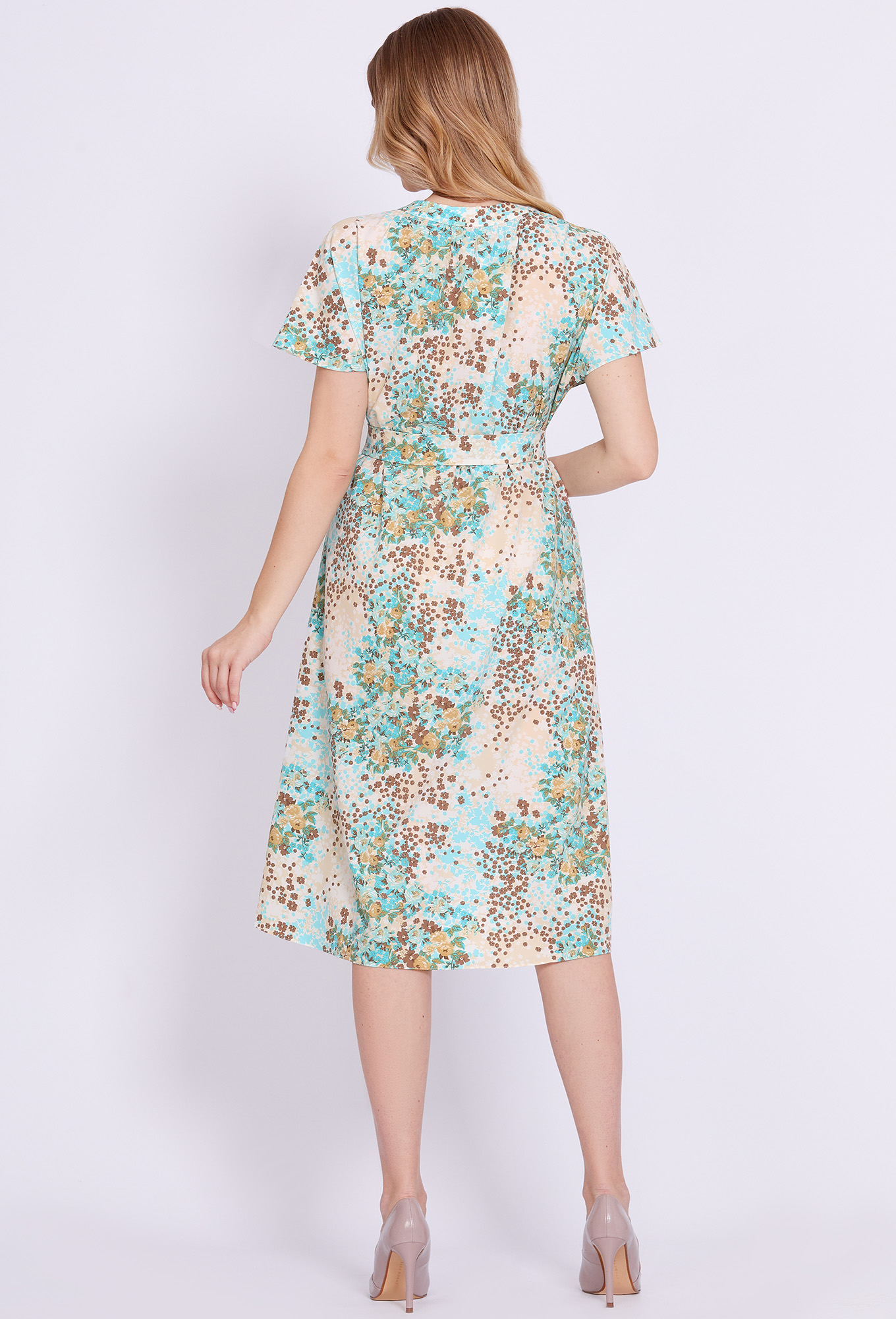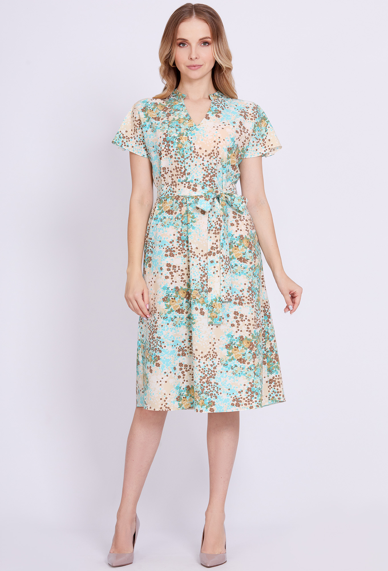 Модель: Солеи 4589 голубой цветы ..показатьРост: 170 см (девушка на фото ростом 170см) Сезон: Весна-Лето Тип ткани: 100% вискозаНежное, легкое, комфортное платье А-образного силуэта, выполнено из мягкой, приятной ткани с акварельным цветочным принтом. Модель, с цельнокроеными рукавами, V-образным вырезом горловины, фигурным воротником-стойкой и функциональными карманами в боковых швах, дополнили интересным элементом по горловине спинки в виде сборки на венгерку в несколько рядов. Чтобы сделать платье еще более эффектным – линию талии подчеркнули стильным поясом-ремнем с пряжкой.