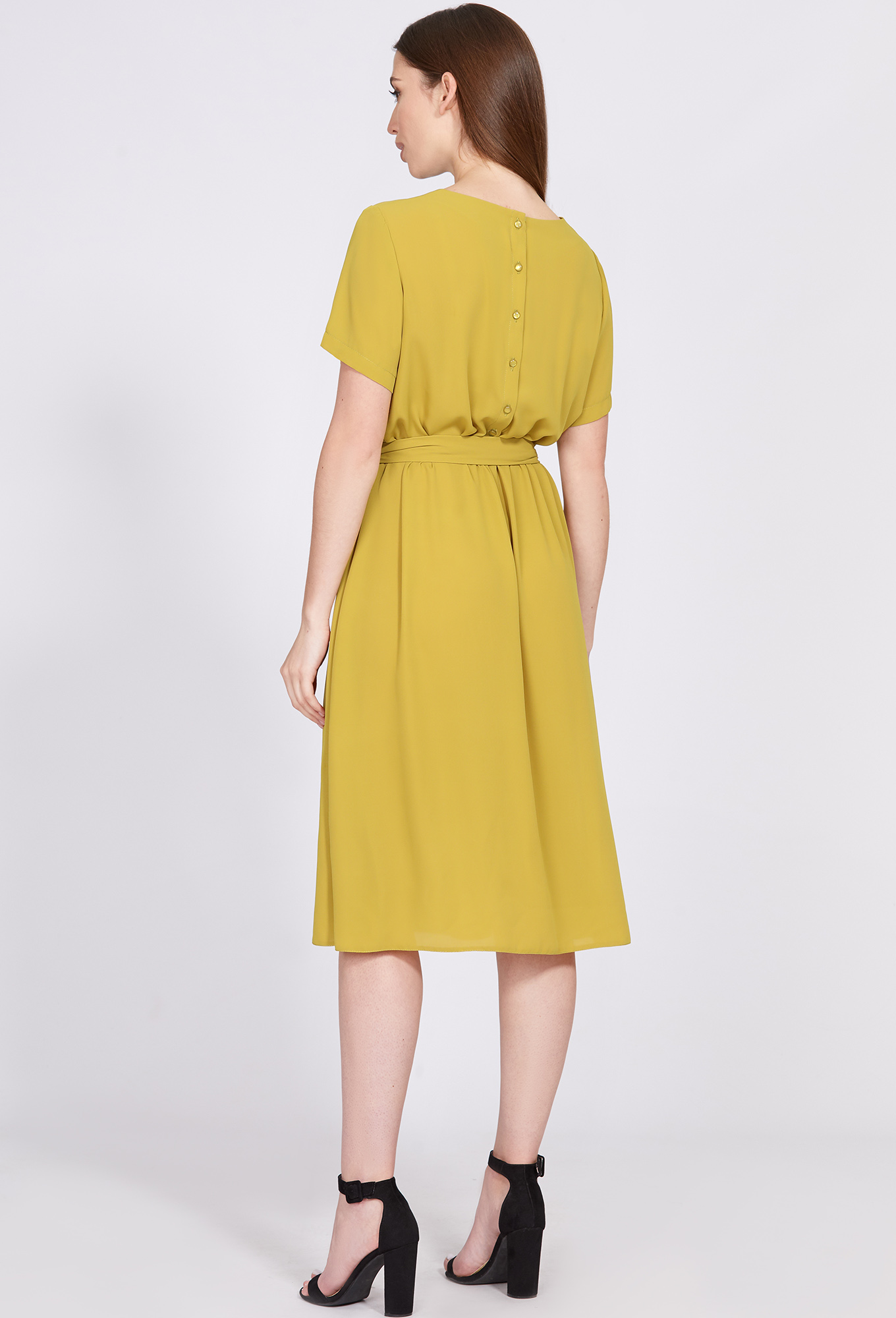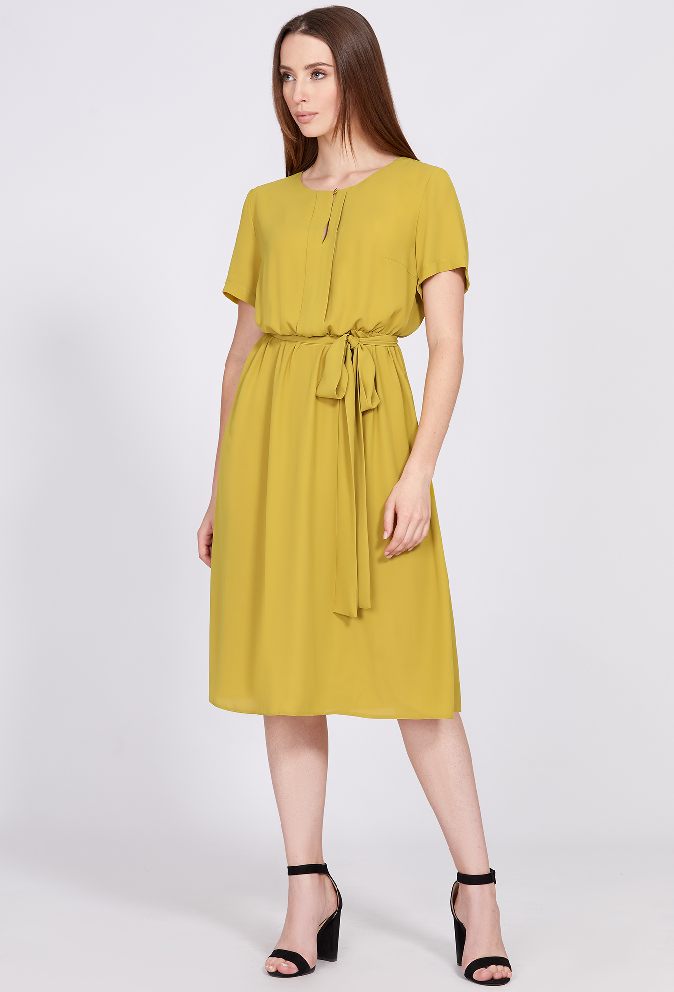 Модель: Солеи 4664 олива Рост: 17..показать0 см (девушка на фото ростом 170см) Сезон: Весна-Лето Тип ткани: 100% ПолиэстерЭлегантное платье-миди Х-образного силуэта, отрезная по линии талии и собранная на эластичную тесьму, с округлой формой горловины и втачными короткими рукавами. Лиф по переду со складками и щелевидным разрезом с отделочной пуговицей, по спинке - с застежкой на петли и пуговицы. Завершает образ тканевый пояс в тон, подчеркивающий изящную женскую талию.