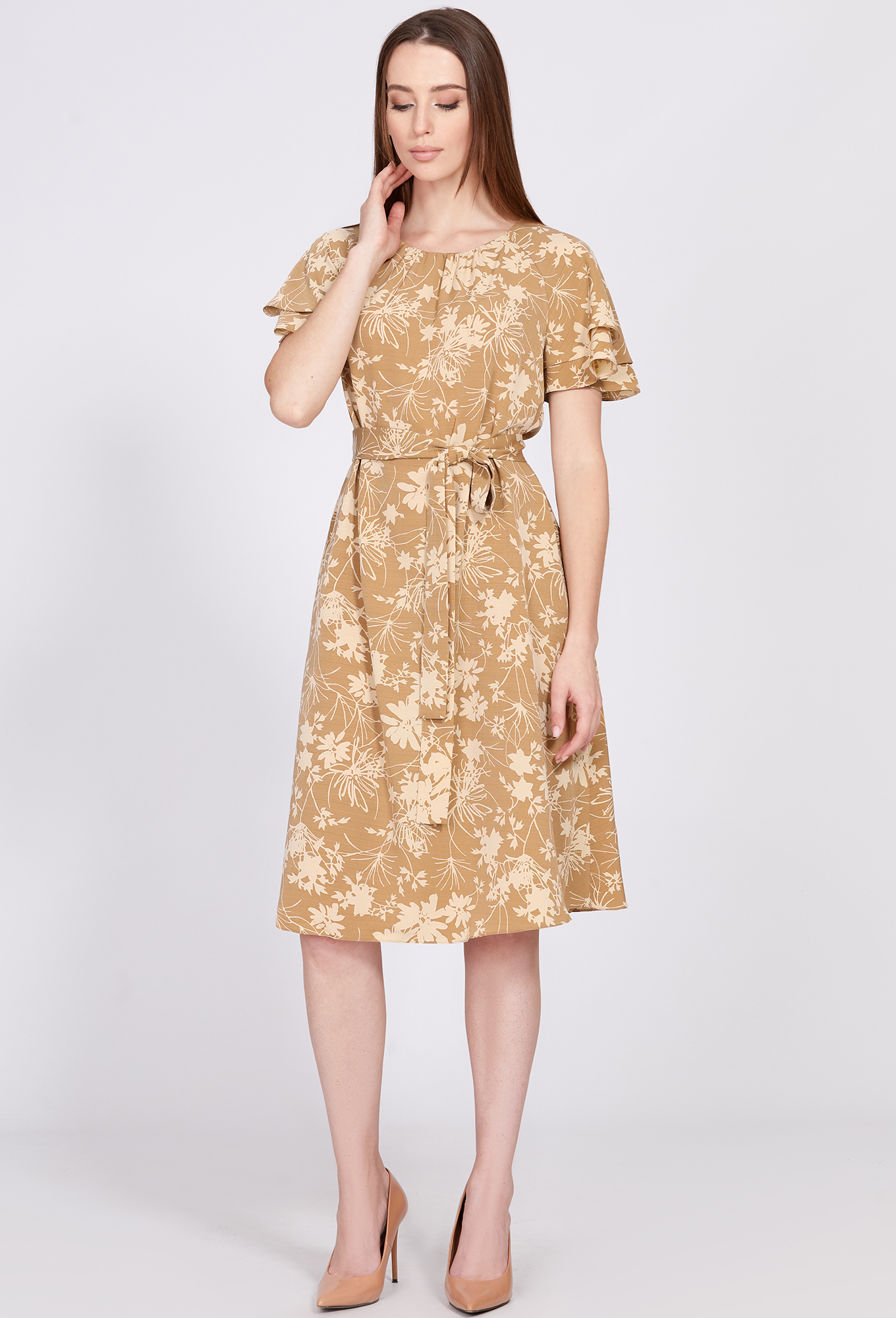 Модель: Солеи 4727 бежевый цветы ..показатьРост: 170 см (девушка на фото ростом 170см) Сезон: Весна-Лето Тип ткани: 100% ПолиэстерВоздушное платье расклешённого кроя с округлой формой горловины выполнили из ткани с цветочным принтом. Максимально женственной модель делают струящийся силуэт, сборка по горловине переда и двойные рукава-бабочки. Нижний слой платья выполнен из мягкой приятной к телу ткани. Чтобы сделать платье еще более эффектным, линию талии подчеркнули поясом из основной ткани.