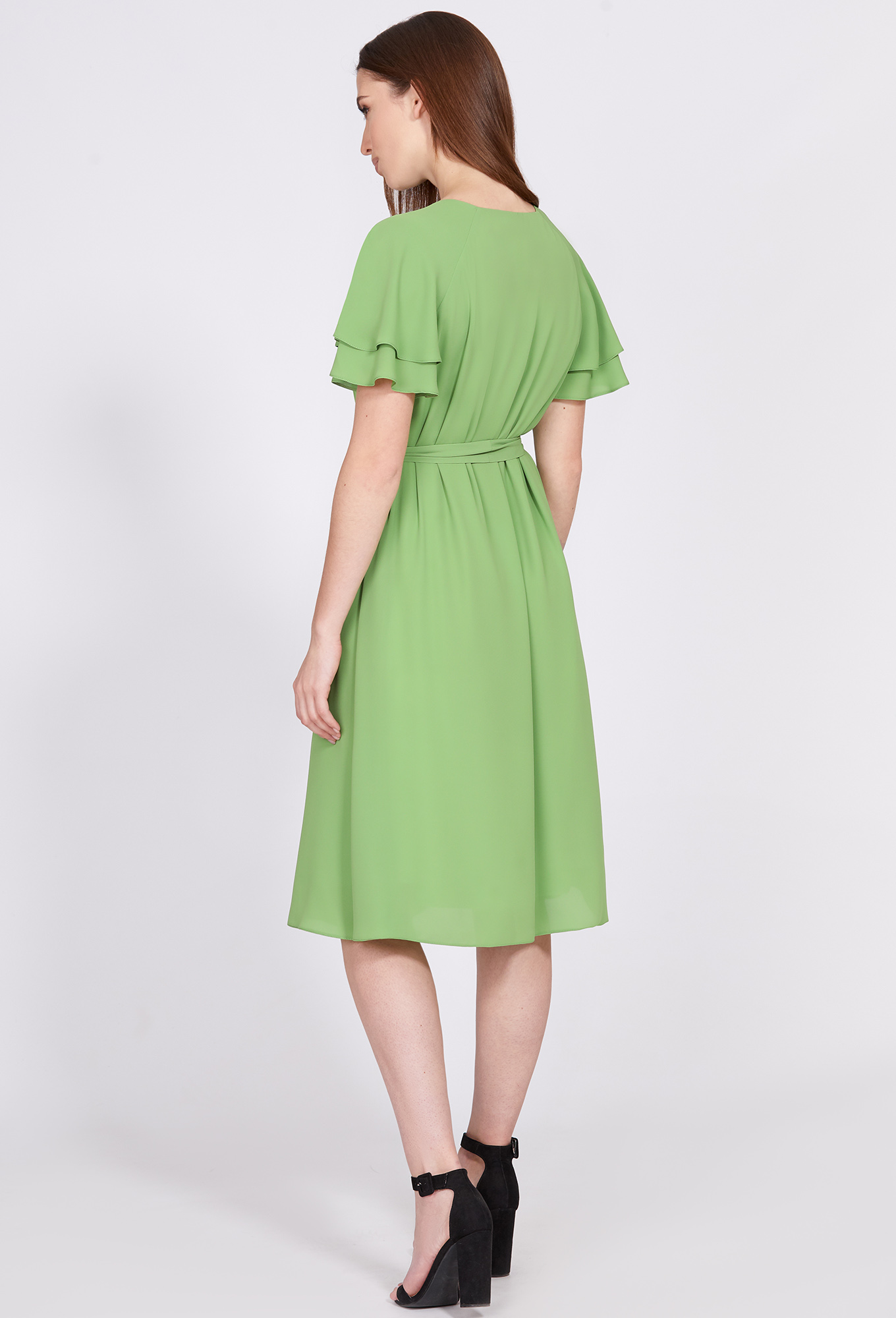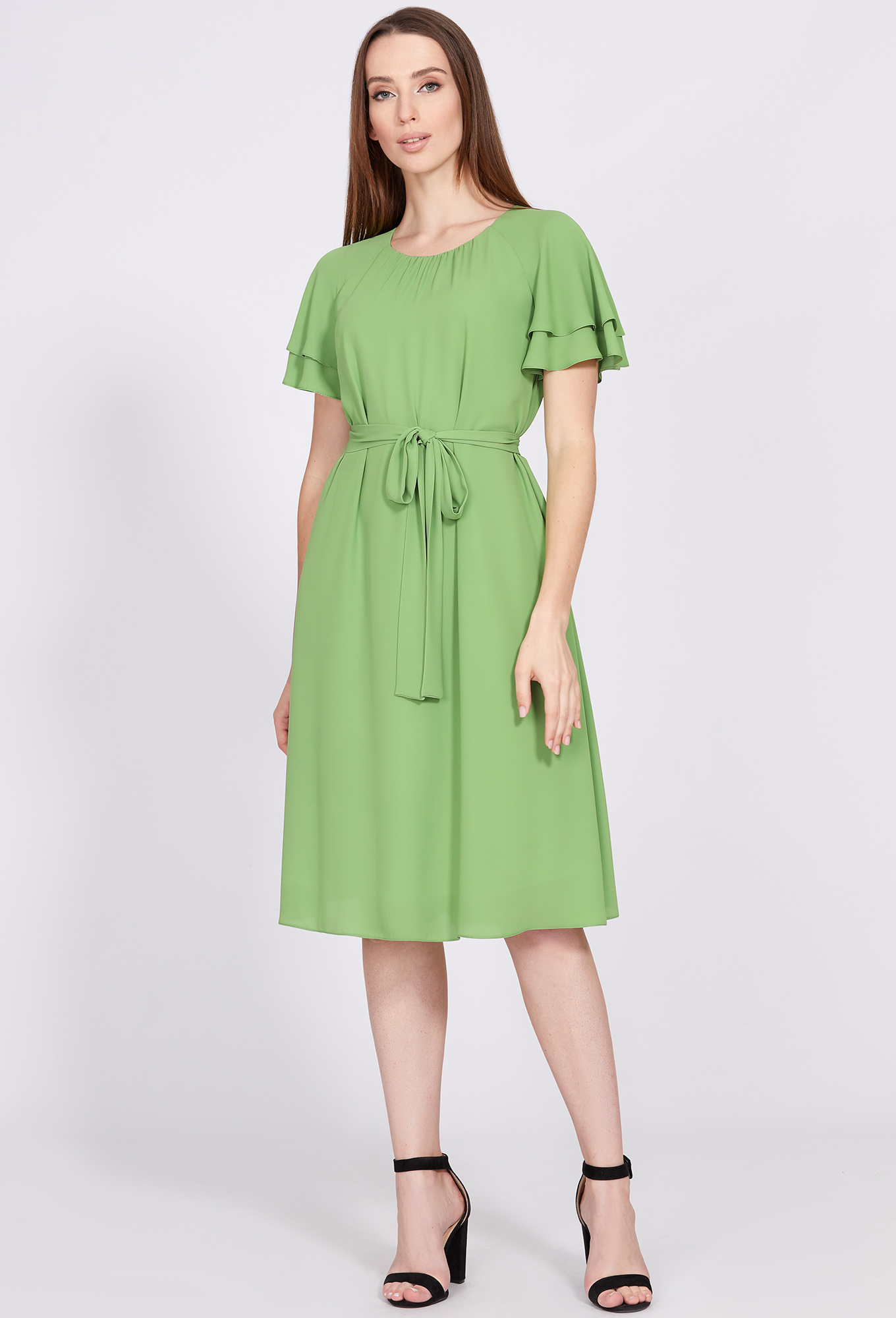 Модель: Солеи 4727 салат Рост: 17..показать0 см (девушка на фото ростом 170см) Сезон: Весна-Лето Тип ткани: 100% ПолиэстерВоздушное платье расклешённого кроя с округлой формой горловины выполнили из ткани с цветочным принтом. Максимально женственной модель делают струящийся силуэт, сборка по горловине переда и двойные рукава-бабочки. Нижний слой платья выполнен из мягкой приятной к телу ткани. Чтобы сделать платье еще более эффектным, линию талии подчеркнули поясом из основной ткани.