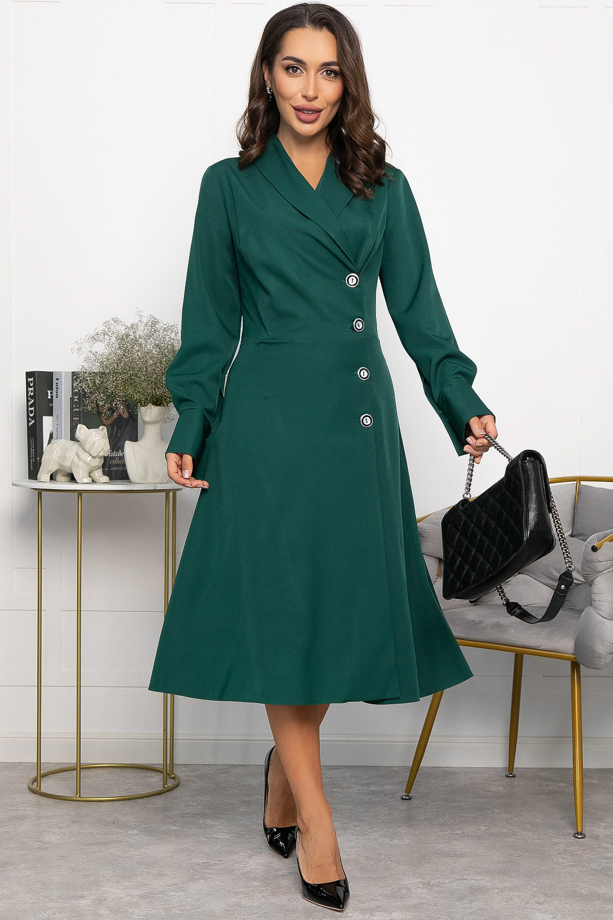 Платье на запах — это настоящая находка для женщин, которые хотят выглядеть стильно и уверенно. Оно сочетает в себе элегантность, красоту и изысканность, делая каждую женщину воплощением грации и уверенности. Длинный втачной рукав с акцентной манжетой придаёт платью дополнительную элегантность и подчёркивает изящество силуэта. Это платье идеально подходит для деловых встреч и офисного гардероба.