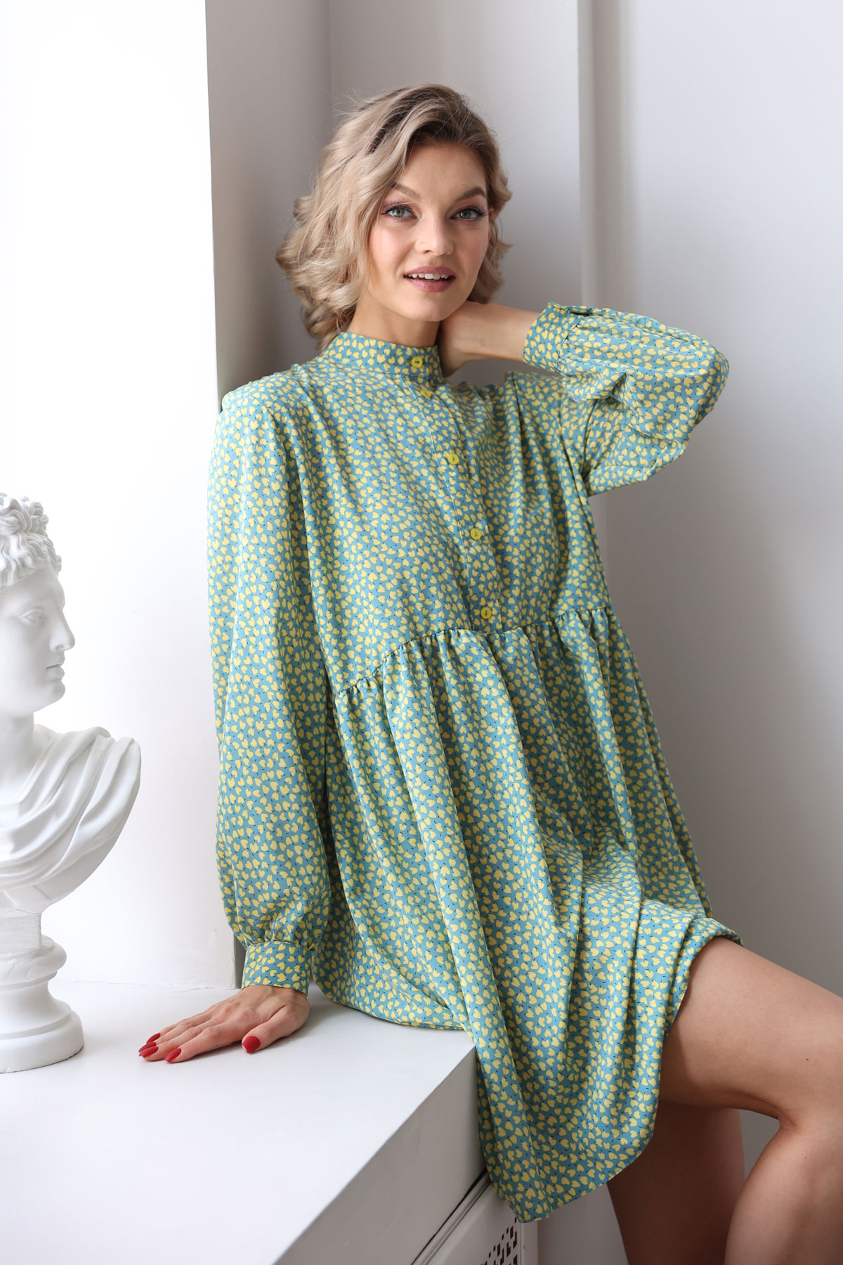 Параметры модели: 175 см, грудь 86 см, талия 66 см, бедра 96 см.
