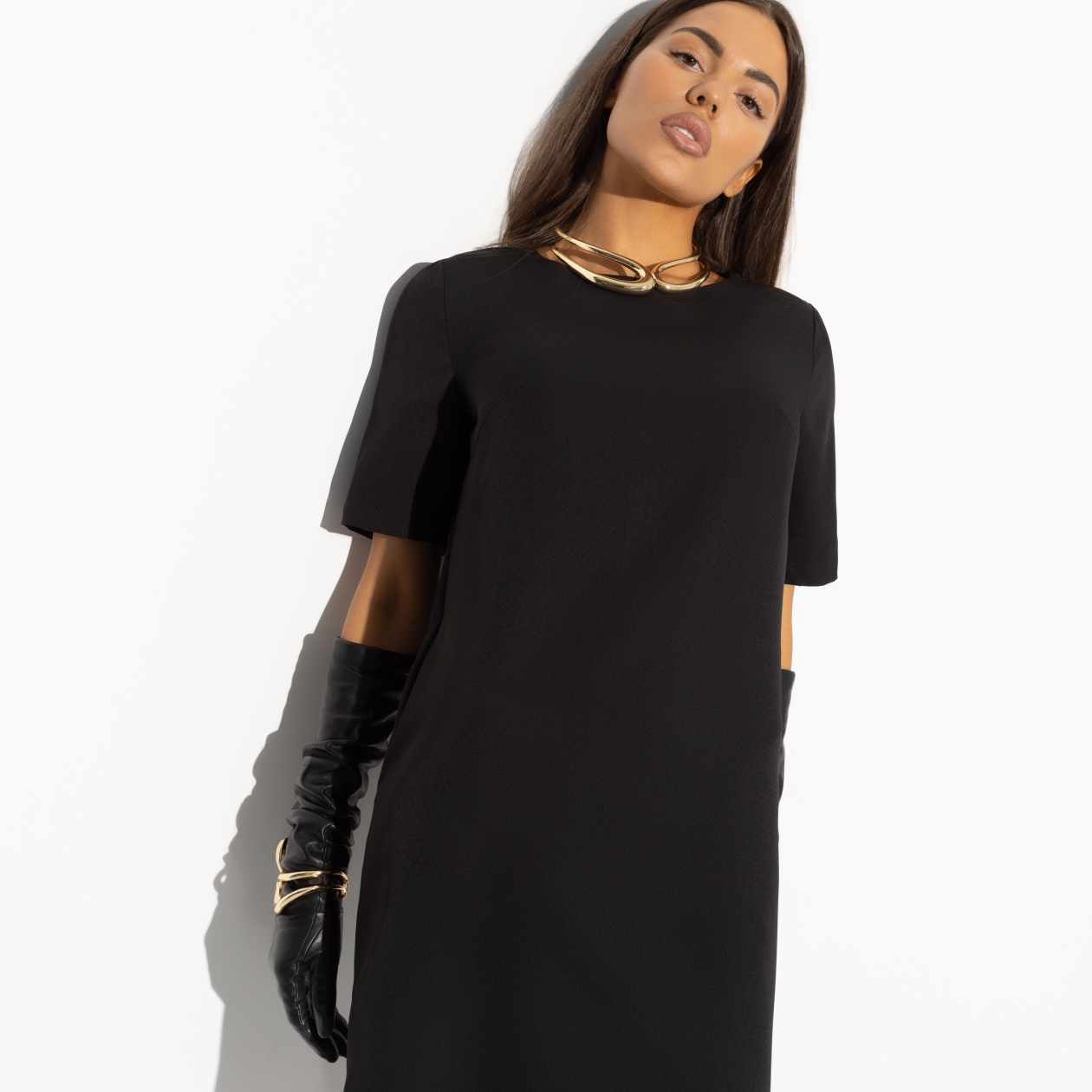 Поставить себя на первое место, значит выбрать комфорт, не жертвуя элегантностью. Платье в черном цвете от CHARUTTI не заставит тебя ни на секунду усомниться в правильности выбора. А грамотно очерченные личные границы идут бонусом. Платье лаконичного кроя в длине до колена. Прямой силуэт, есть карманы. Застежка на акцентную молнию по задней части изделия. Молния украшена бантом. Платье подойдет любому типу фигуры.