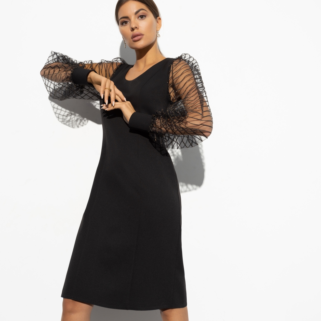 Горячие сводки с fashion-рынка: платье-футляр с невероятной красоты объемными рукавами-сеткой. Не нужно дожидаться праздника, чтобы позволить себе немного роскоши!