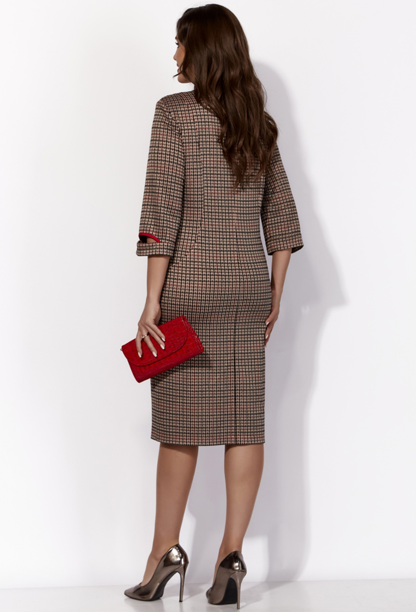 Выполненные на уровне бедер карманы, добавляют платью дополнительный акцент и изюминку. Стильный втачной рукав длиной 3/4 придает платью легкость и воздушность, подчеркивая женственность и грацию.