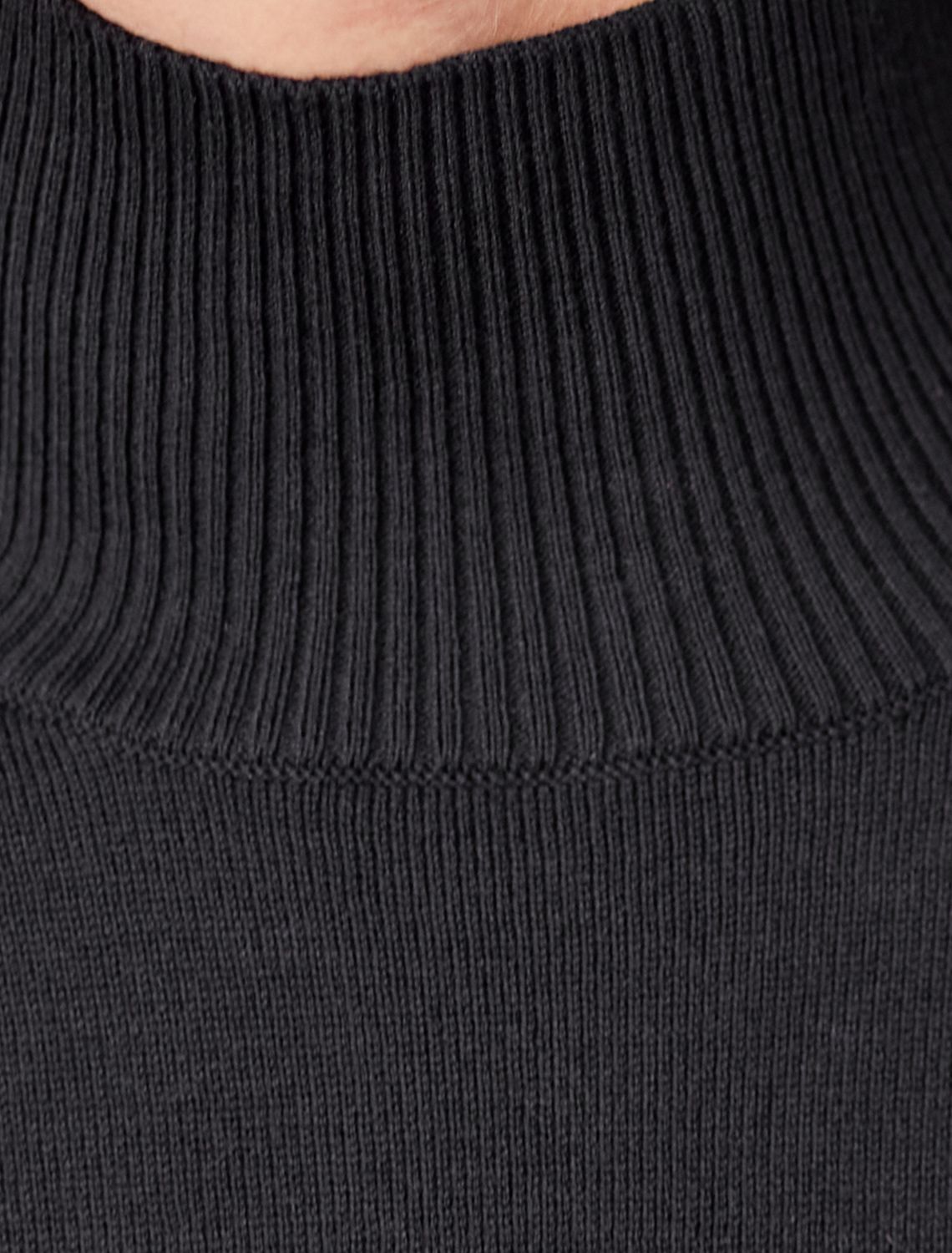 Платье тонкой вязки выполнено из хлопка. Лаконичная модель с высоким воротом дополнена манжетами и разрезами по бокам. Изделие свободно сидит по фигуре и не сковывает движений. Мягкая пряжа очень приятная к телу не колется и сохраняет тепло при этом не перегревая. Изделие дополнено металлическим логотипом бренда.