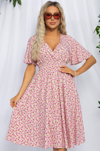 Платье, окутывающее ощущением лёгкости. Отрезное по линии талии на мягкой резинке, верх скроен на запах. Красивый вырез подчёркивает зону декольте, приковывая внимание. Рукав втачной, длинный на резинке, с мягкими складками по верхней части плеча. Воздушная юбка, состоящая из каскадных воланов, добавляет образу романтичности и лёгкости. Немного завышенная талия скроет небольшие недостатки фигуры и подчеркнёт достоинства.