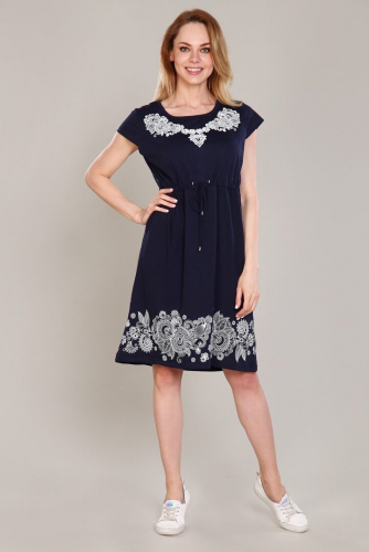 Платье-туника из хлопка с кулиской на талии - Катерина - 147К - т-синий