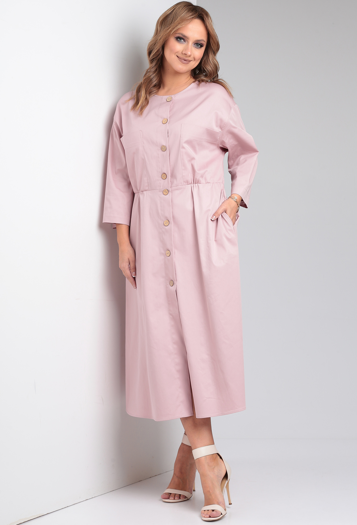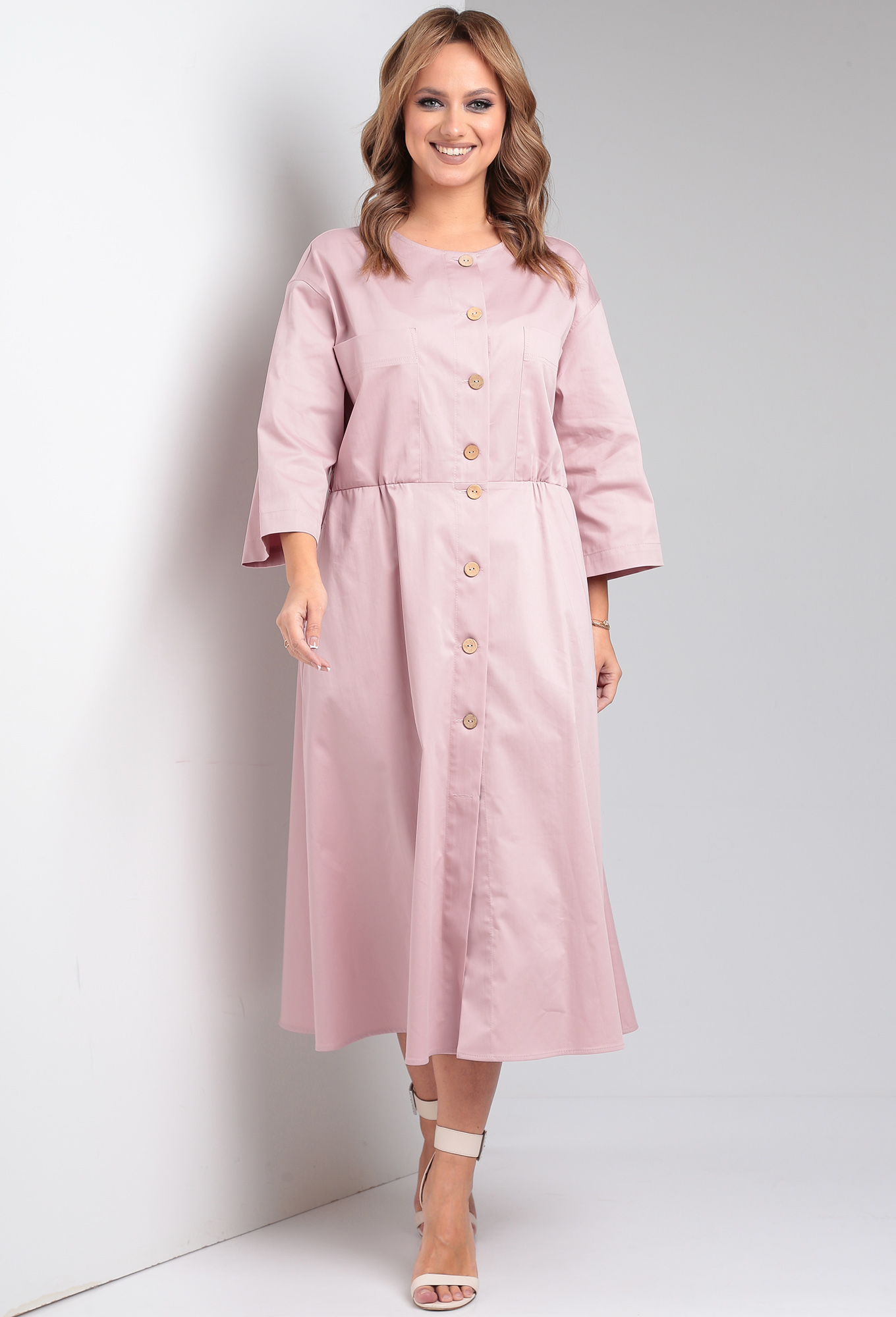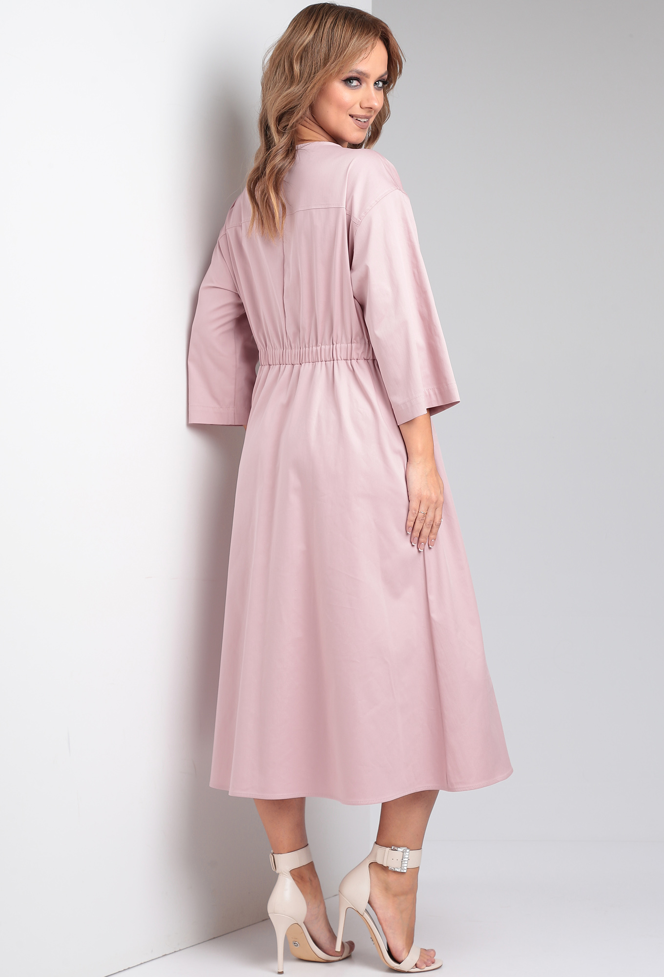 Модель: Твин 7699 розовый Рост: 1..показать64 см (рост модели на фото 170см) Сезон: Весна-Лето Тип ткани: Хлопок 98%, эластан 2%Платье женское Х-образного силуэта из однотонной легкой плательно-костюмной ткани с жемчужным блеском. Платье по линии талии отрезное, юбка расклешенная. По переду центральная застежка на петли-пуговицы, накладные карманы в верхней части, горловина округлой формы. По спинке кокетка, по талии кулиса с широкой резинкой. Рукав втачной на углубленной пройме и спущенной линией плеча.