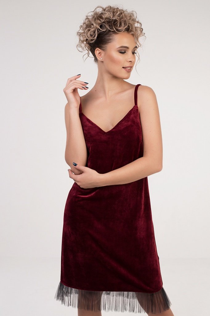 Платье в бельевом стиле на бретелях, регулируемых по длине, по низу изделия - оборка из фатина.