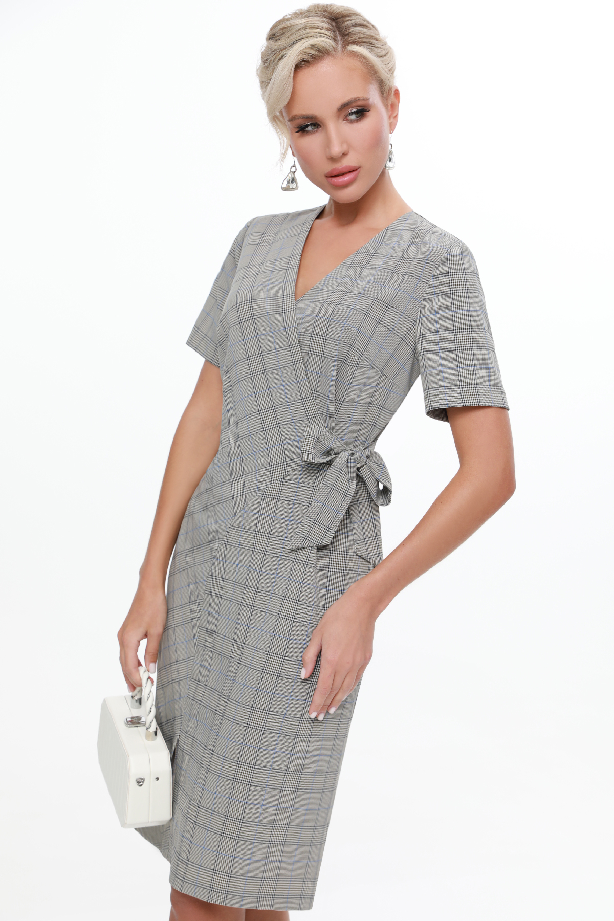 Платье с коротким рукавом и имитацией запаха — стильный вариант, который добавит разнообразия как в деловой, так и в повседневный гардероб. Приталенный фасон с V-образным вырезом смотрится одновременно сдержанно, женственно и элегантно. Главный акцент платья — имитация запаха с завязками, которые можно завязать как на узелок, так и на актуальный в этом сезоне бант, который придаст образу кокетливые нотки. Небольшой разрез спереди не только обеспечивает свободу движений, но и добавляет платью перчинку. Модель выполнена из качественной костюмной ткани, которая не просвечивает и хорошо держит форму. Чтобы изделие не деформировалось, рекомендуется стирать его в деликатном режиме при температуре не более 30 градусов.