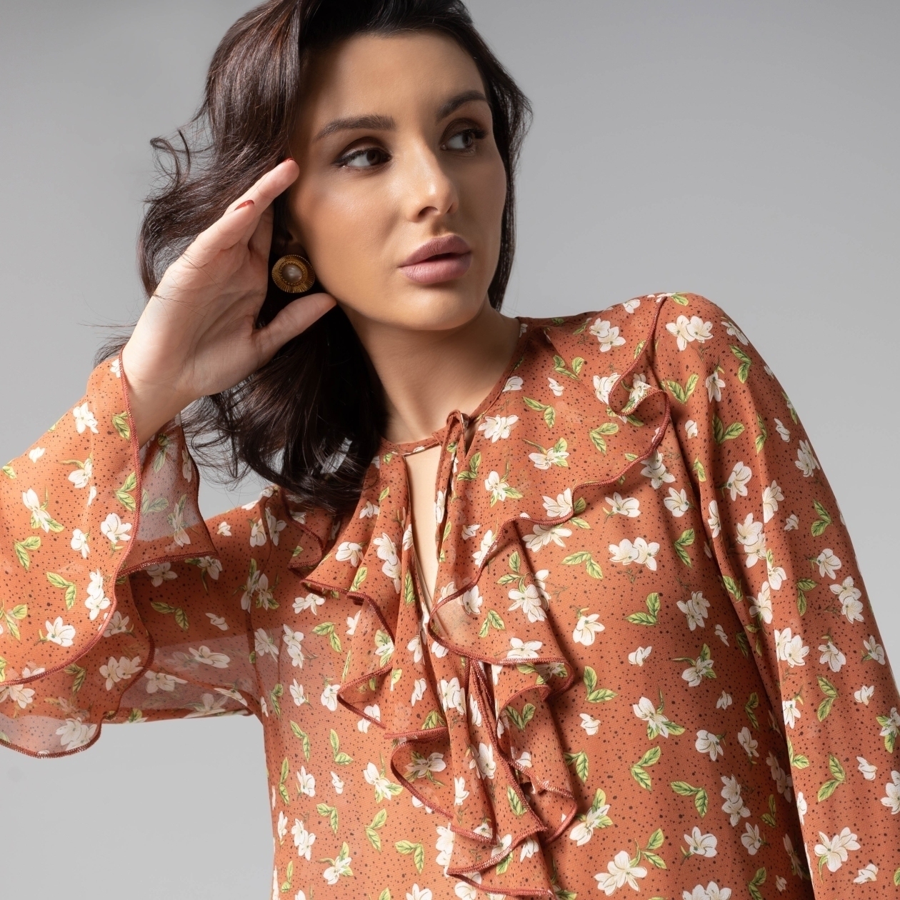 Свободный силуэт платья ЧАРУТТИ с нежным цветочным принтом словно создан для тех, кто ценит комфорт и элегантность в каждой детали. Ткань мягко струится по фигуре, подчеркивая естественную грацию и обеспечивая непревзойденную легкость в движении. Платья из коллекции PREMIUM – идеальное сочетание бохо-эстетики и утонченного шика, где каждая деталь молчаливо заявляет о безупречном вкусе. Платье в длине до колена. Дополнено воланами и завязками в зоне декольте. Изделие с подкладом.