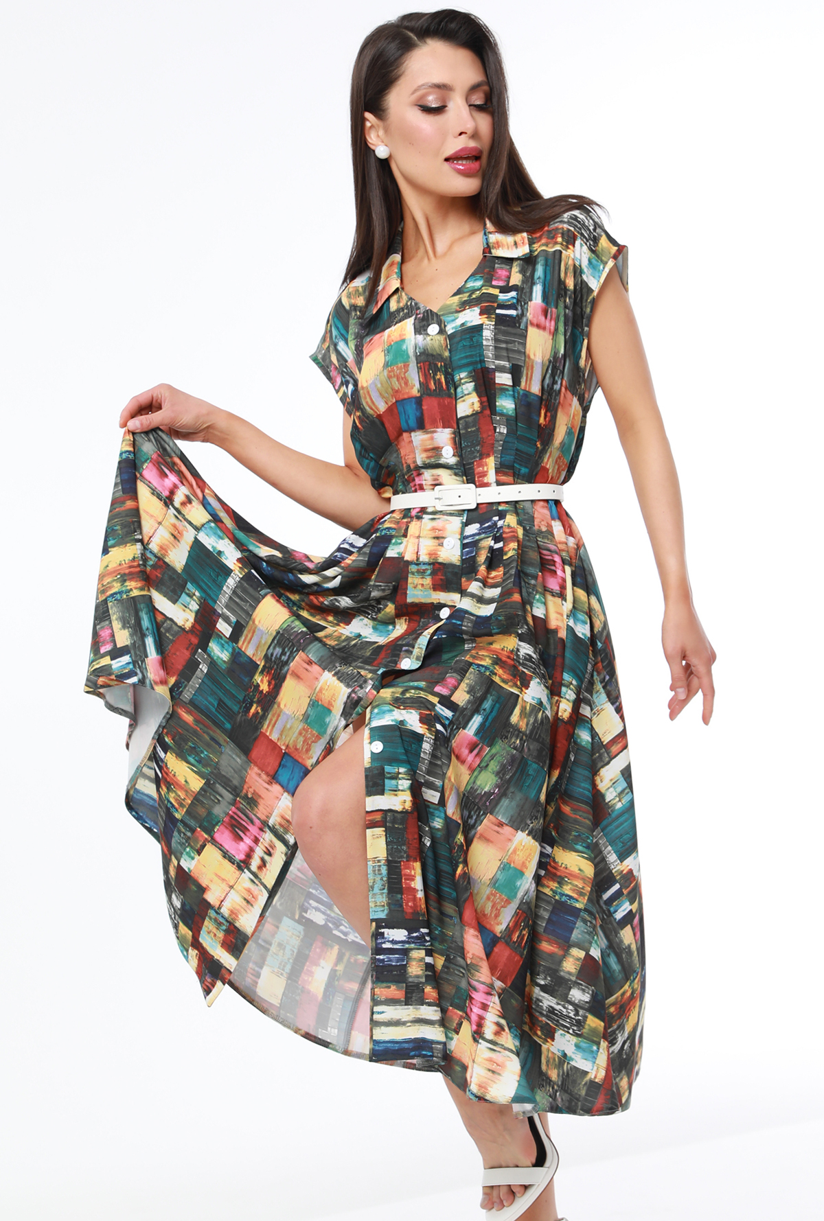 Это элегантное летнее платье с принтом станет отличным дополнением вашего гардероба. Выполненное из плательно-костюмной ткани, оно сочетает в себе стиль и комфорт, идеально подходя для теплых летних дней. Легкость и воздухопроницаемость материала обеспечат вам удобство и приятные ощущения на протяжении всего дня. Платье имеет застежку на пуговицах, что придает ему классический и утонченный вид. Воротничок аккуратно обрамляет шею и подчеркивает линию плеч, добавляя образу элегантности и сдержанности. Модель платья выполнена в полуприлегающем силуэте, который удачно подчеркивает фигуру, не ограничивая движения. Такой крой подходит для разных типов фигур, делая платье универсальным и удобным для большинства женщин. Спущенные рукава добавляют платью современности и расслабленного вида. Ремешок подчеркивает талию и завершает образ, добавляя акцент на фигуре. Для ухода за платьем рекомендуется бережная стирка при температуре 30 градусов. Это поможет сохранить яркость принта и форму изделия, предотвращая выцветание и деформацию ткани.