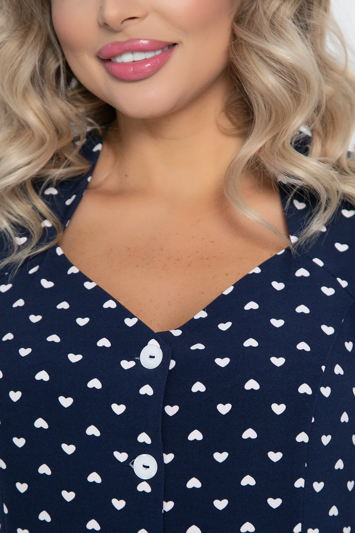 Принт: белые сердечки.
