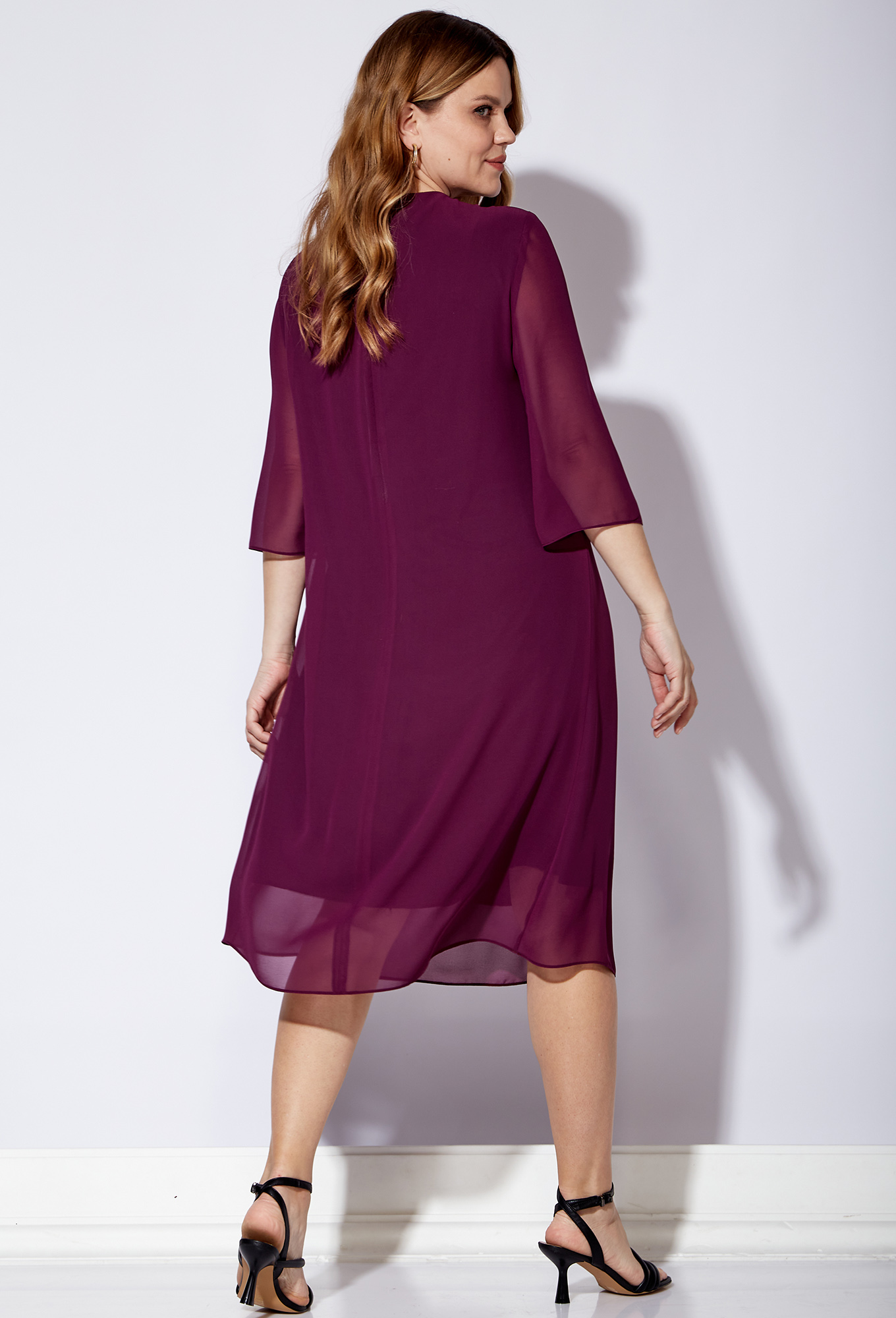 Модель: Виола Стайл 0952 баклажан ..показать>Рост: 164 см (рост модели на фото 170см) Сезон: Весна-Лето Тип ткани: Полиэстер 94%, спандекс 4%Платье из шифона на подкладке. Спереди черная печать. Втачной широкий рукав. В заднем шве молния.
