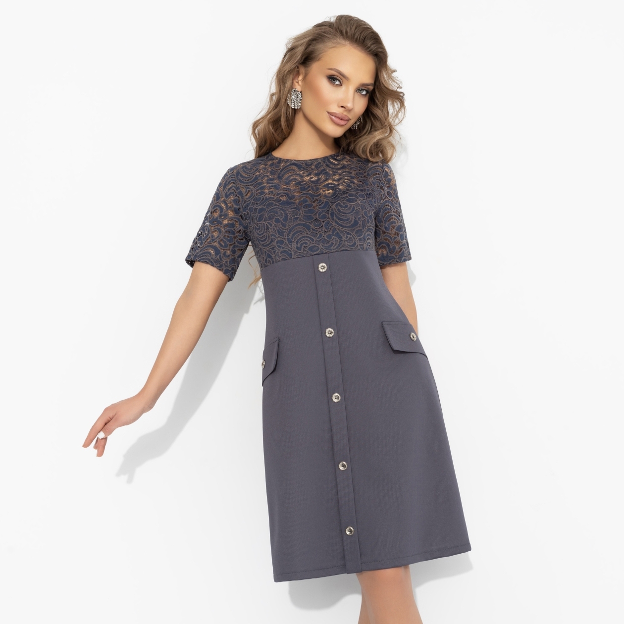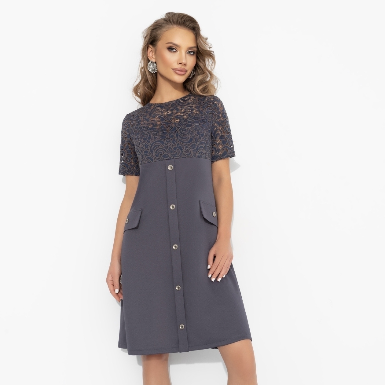 Есть платья, которые не подводят. «Воплощение женственности» – именно такое. Это платье будто знает язык любви. Легко вписывается в любой сценарий и тонко усиливает то, что невозможно сыграть – мягкость, прелесть и то самое притяжение, за которым идут чувства. Платья А-силуэта, кружевной верх. Карманы и пуговицы декоративные.