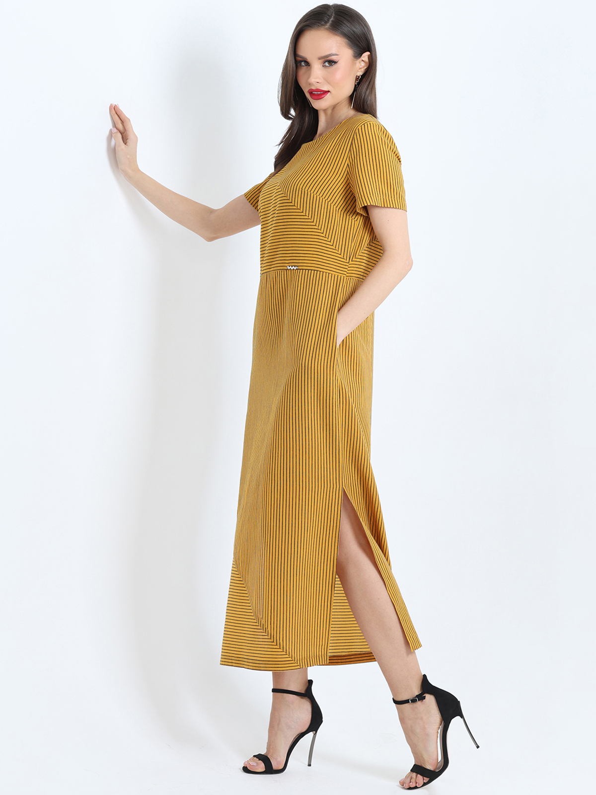 Платье макси с коротким рукавом — стильный и лаконичный вариант, который станет фаворитом как на каждый день, так и для особого случая. Прямой силуэт с отрезной талией надежно маскирует нюансы фигуры, дарит чувство легкости и комфорта. Два прорезных кармана незаметны, но при этом функциональны. Особенностью платья становятся вертикальные разрезы по бокам, которые добавляют образу перчинки и оригинальности. Модель длины макси зрительно вытягивает силуэт, а если добавить к образу туфли на каблуке, то женщина любой комплекции будет выглядеть в таком наряде утонченно, женственно и эффектно. Платье выполнено из качественной приятной к телу ткани, которая не просвечивает и хорошо пропускает воздух. Рекомендуется стирать изделие в деликатном режиме при температуре до 30 градусов, не отжимать и сушить в расправленном виде.