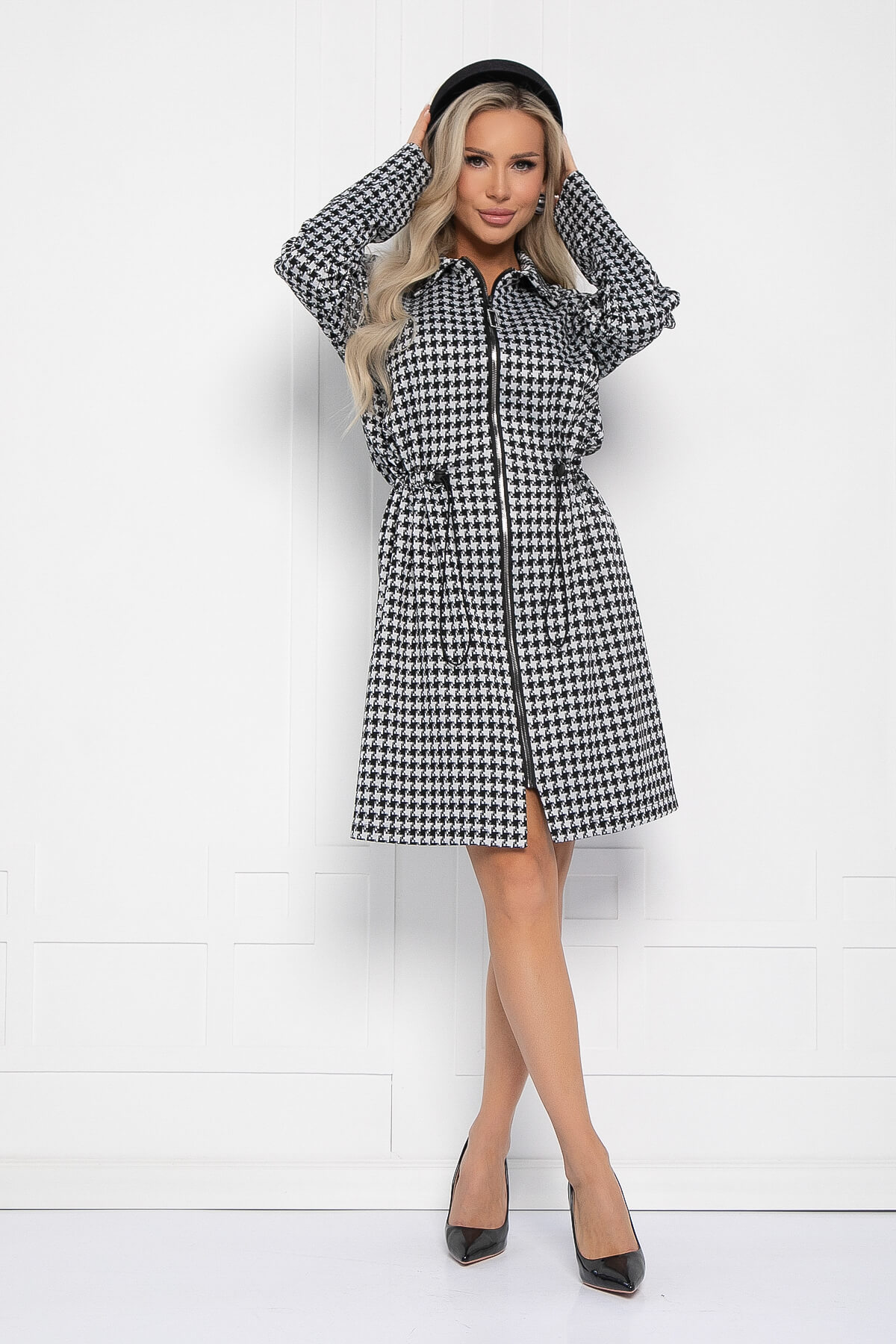 Платье, которое непременно привлечёт взгляды своим неповторимым дизайном и станет идеальным выбором для тех, кто ценит современные и актуальные образы. Элегантный воротник и застёжка на молнию придают ему утончённый вид. А спущенные плечи добавляют лёгкости и расслабленности. Кулиска с резинкой и регулятором на талии позволяет идеально подогнать силуэт под фигуру. Это платье станет универсальным и стильным элементом вашего гардероба, подчёркивая вашу индивидуальность.