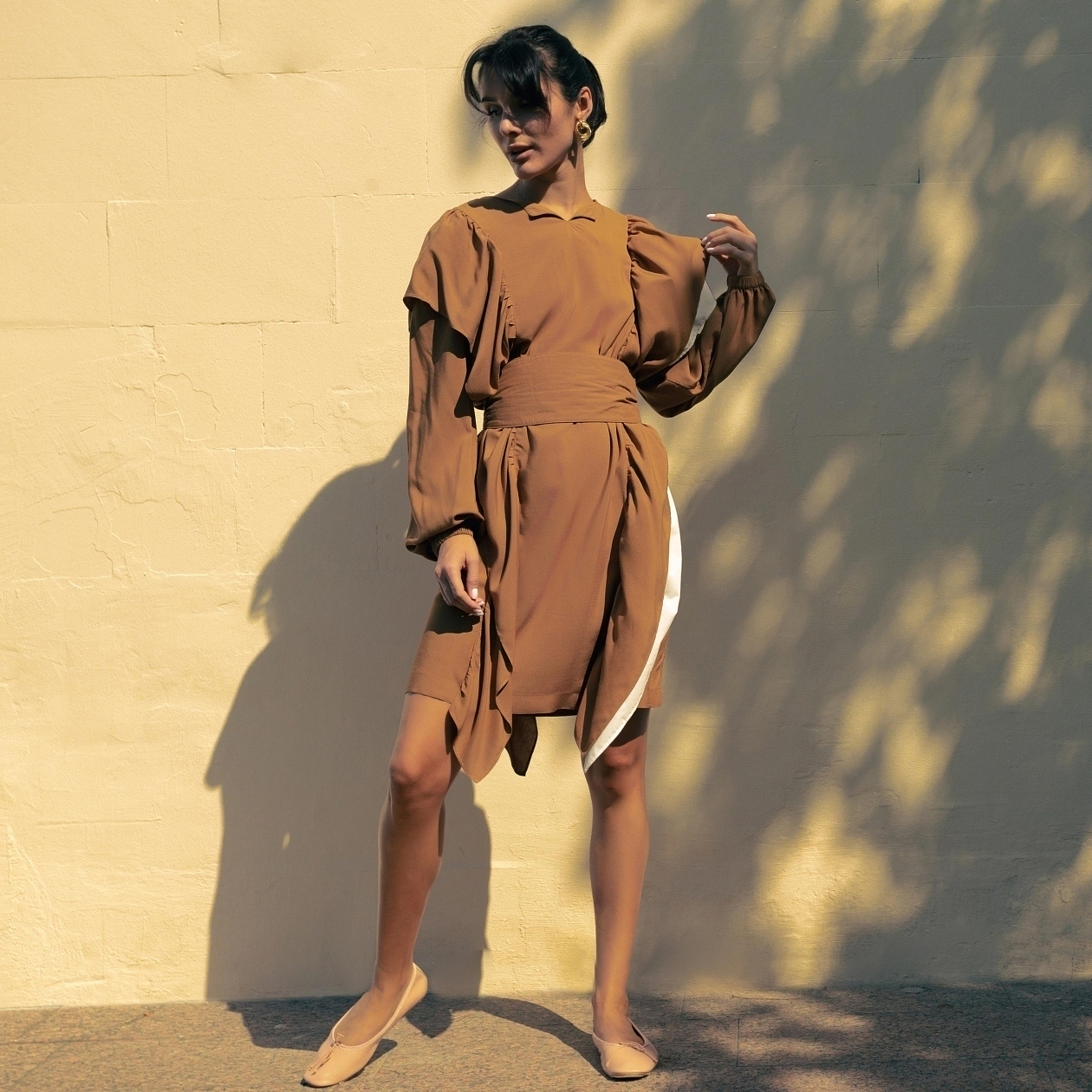 Эксклюзивное платье с декоративными воланами из коллекции PREMIUM – грамотная инвестиция на несколько сезонов вперед. С теплым горчичным оттенком превосходно сочетаются уверенная походка, томный взгляд и...золото.