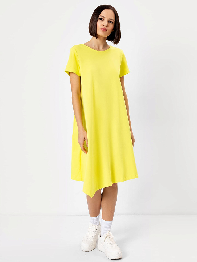Прекрасное женское платье А-силуэта изготавливается из мягкого трикотажного полотна кулирка. Оно станет прекрасным выбором для тех, кто ценит комфорт и стиль. Это платье отличается простотой, красотой и элегантностью, что позволяет создать актуальныйобраз на каждый день. Спинка со средним швом добавляет изюминку в лаконичную модель — такая деталь подчеркивает вашу фигуру и обеспечивает идеальную посадку платья. На спинке выполнен V-образный вырез, придавая платью загадочности и утонченности. Рукав втачной короткий — это идеальное решение для теплых дней. Асимметричный низ платья, делает образ еще более интересным и живым. Длина платья по колено — это самый универсальный вариант, который подходит для большинства типов фигур. Такая длина несоздает проблем с выбором обуви и дает возможность создать множество интересных аутфитов. Таким образом, платье женское из трикотажного полотна кулирка — это прекрасный вариант для модных девушек, которые желают одеваться стильно и комфортно. Это платье отличается ярким дизайном, практичностью и удобством использования в повседневной жизни. Рекомендуем!