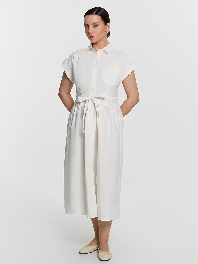 Элегантное женское платье-рубашка миди — сочетание классики и комфорта! Застежка на пуговицы по всей длине позволяет регулировать посадку, добавляя универсальности и удобства. Отложной воротник придает образу строгий, но утонченный стиль, а короткие рукава делают модель легкой и идеальной для теплого сезона. Эластичная сборка на талии подчеркивает силуэт, создавая женственный акцент. Выполненное из чистого хлопка, платье приятно к коже, обеспечивая воздухопроницаемость и комфорт в течение всего дня. Универсальная модель, которую можно носить как самостоятельный наряд или сочетать с аксессуарами, поясами и легкими жакетами, создавая эффектные образы. Идеальный вариант для прогулок, работы и стильных повседневных выходов!
