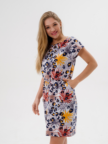 Платье женское домашнее из кулирки Лана салют белый макси