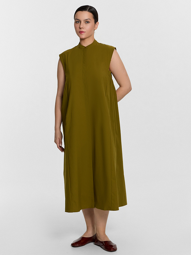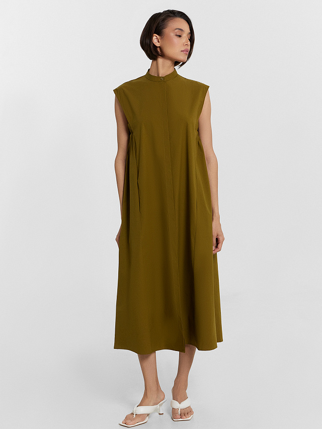 Стильное женское платье из весенне-летней коллекции Mark Formelle — элегантность и комфорт в одной модели! Длина миди делает его универсальным для различных случаев, а свободный крой придает ощущение легкости и непринужденности. Особые акценты — эластичные сборные детали под руками, обеспечивающие удобную посадку, и боковые карманы, добавляющие функциональности и практичности. Горловина со стойкой на пуговице подчеркивает утонченный дизайн и делает образ более изысканным. Это платье выполнено из приятного на ощупь и струящегося искусственного материала, который красиво драпируется и создает эффект легкости при движении.Такая модель идеально подойдет для теплого сезона, сочетая в себе стиль, комфорт и современный дизайн! Незаменимый вариант для тех, кто ценит удобные и оригинальные решения в своем гардеробе.
