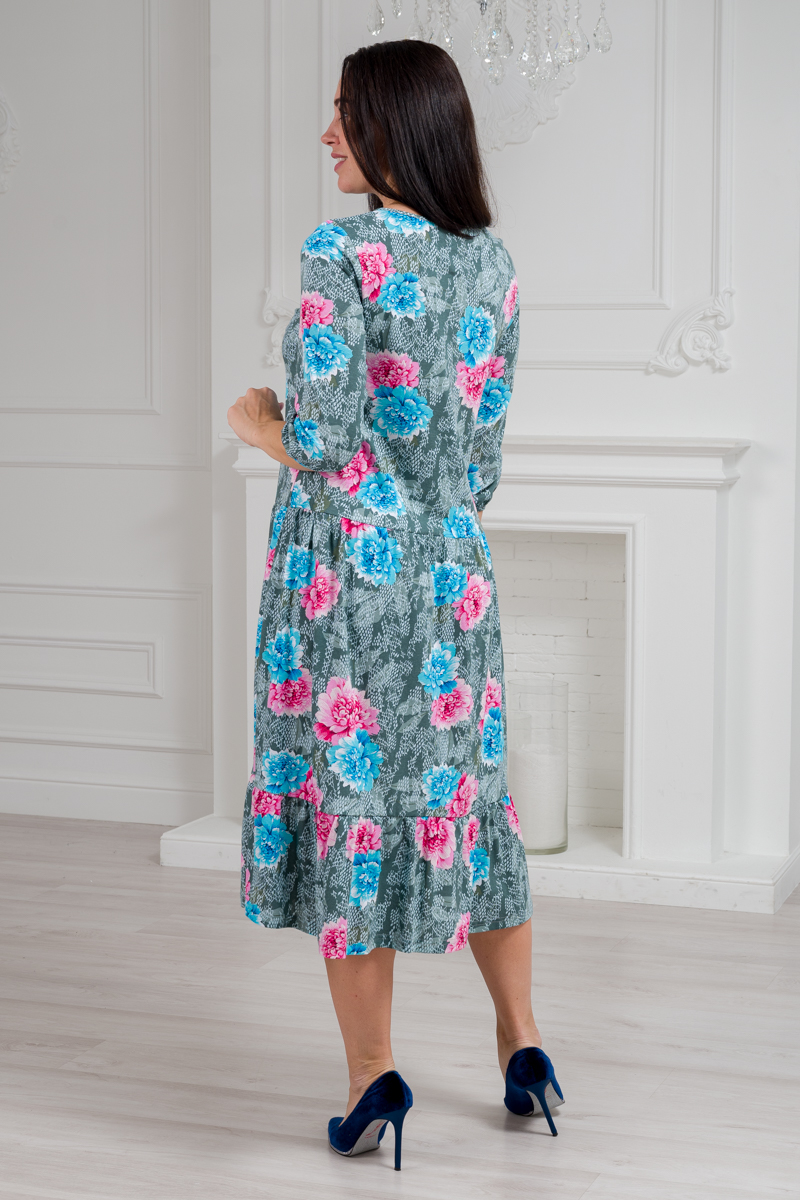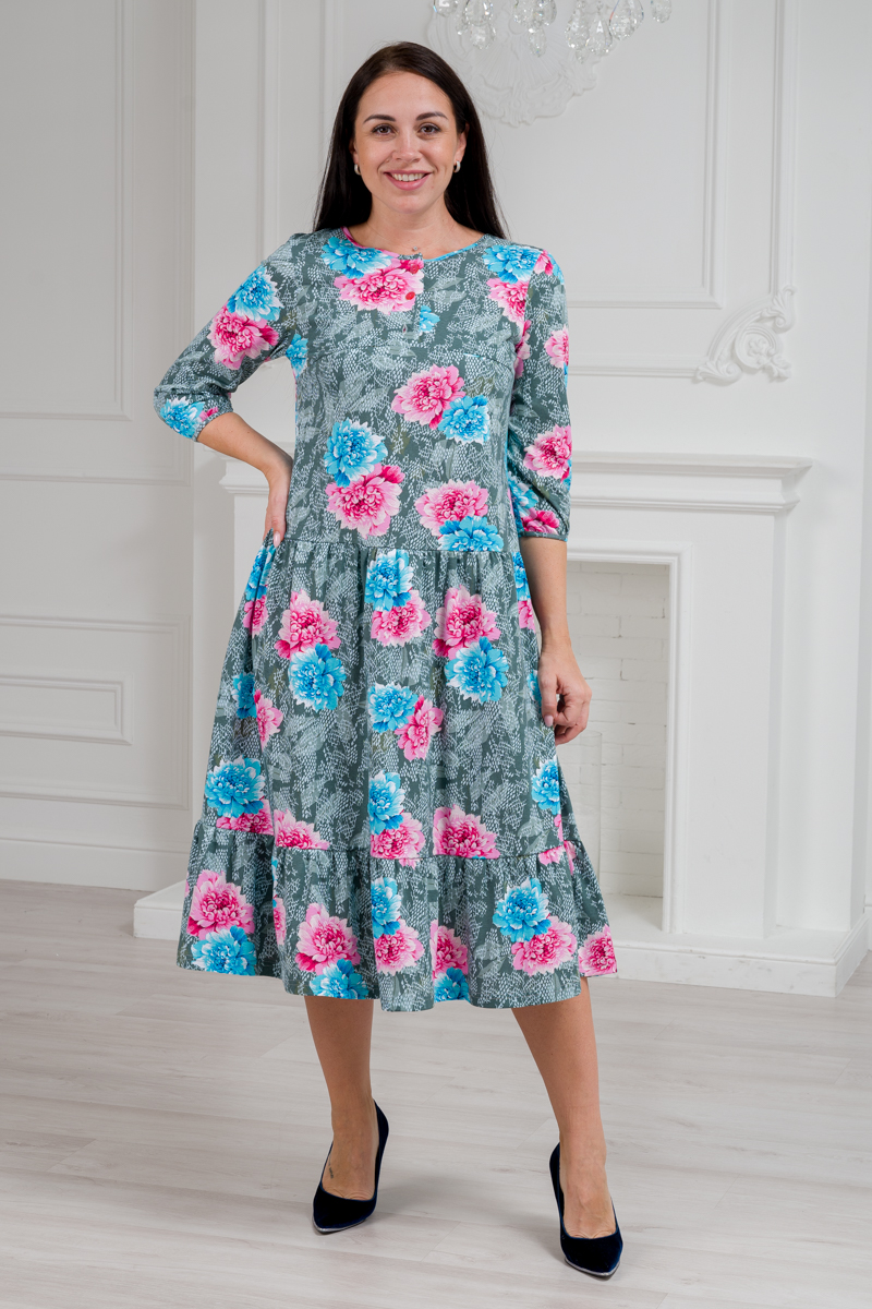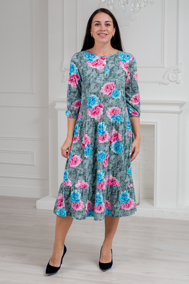 Платье женское из кулирки Амина пион на сером