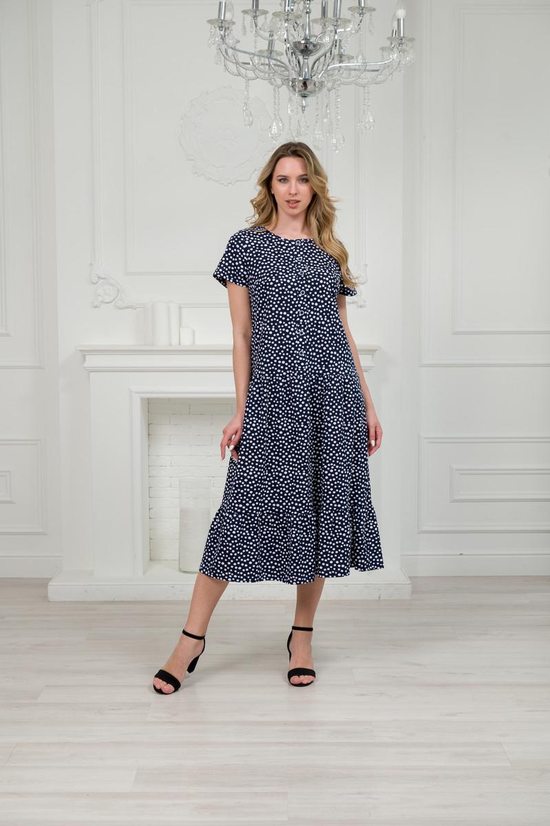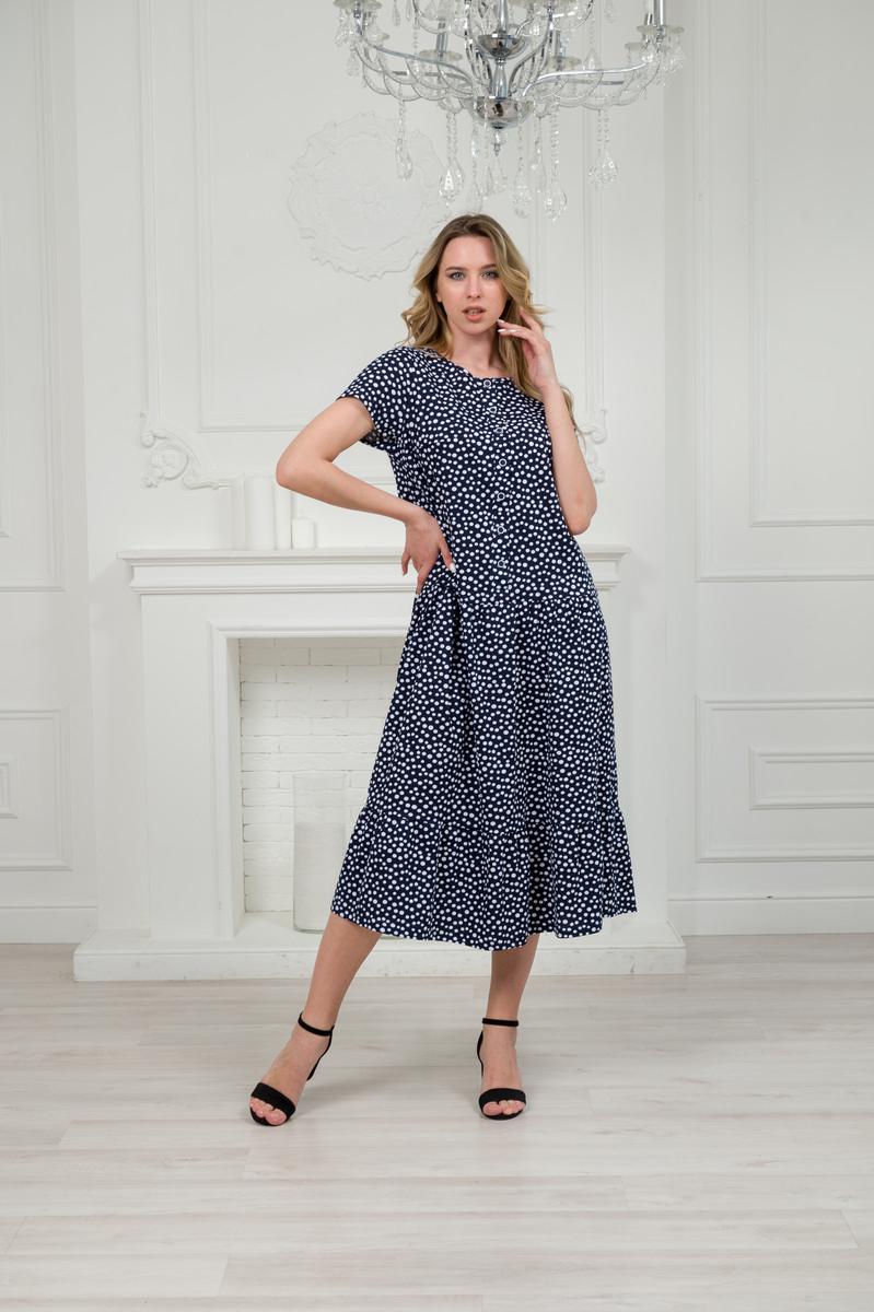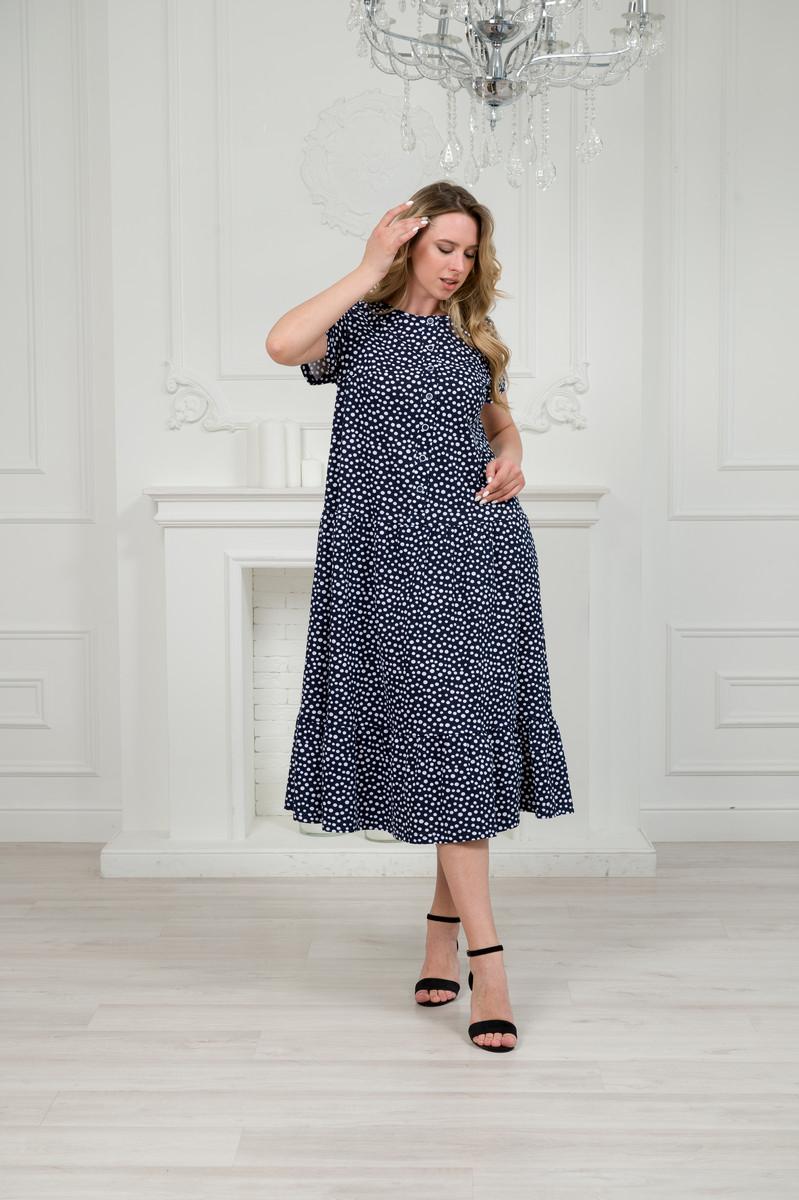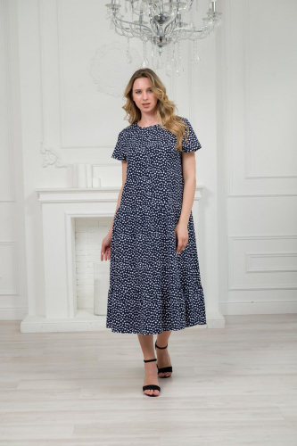 Платье женское из кулирки Кармелита горошек на темно-синем