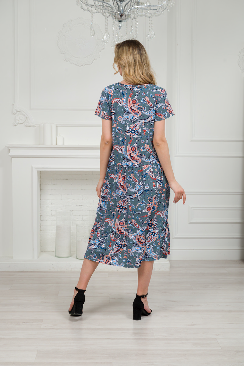 Платье женское из кулирки Кармелита огурцы на зеленом