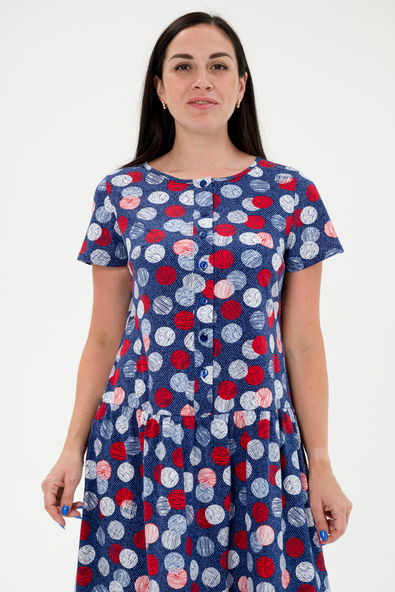 Платье женское из кулирки Кармелита шары на синем