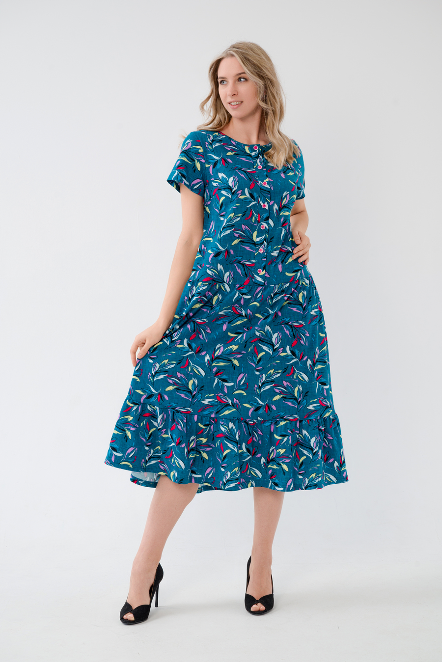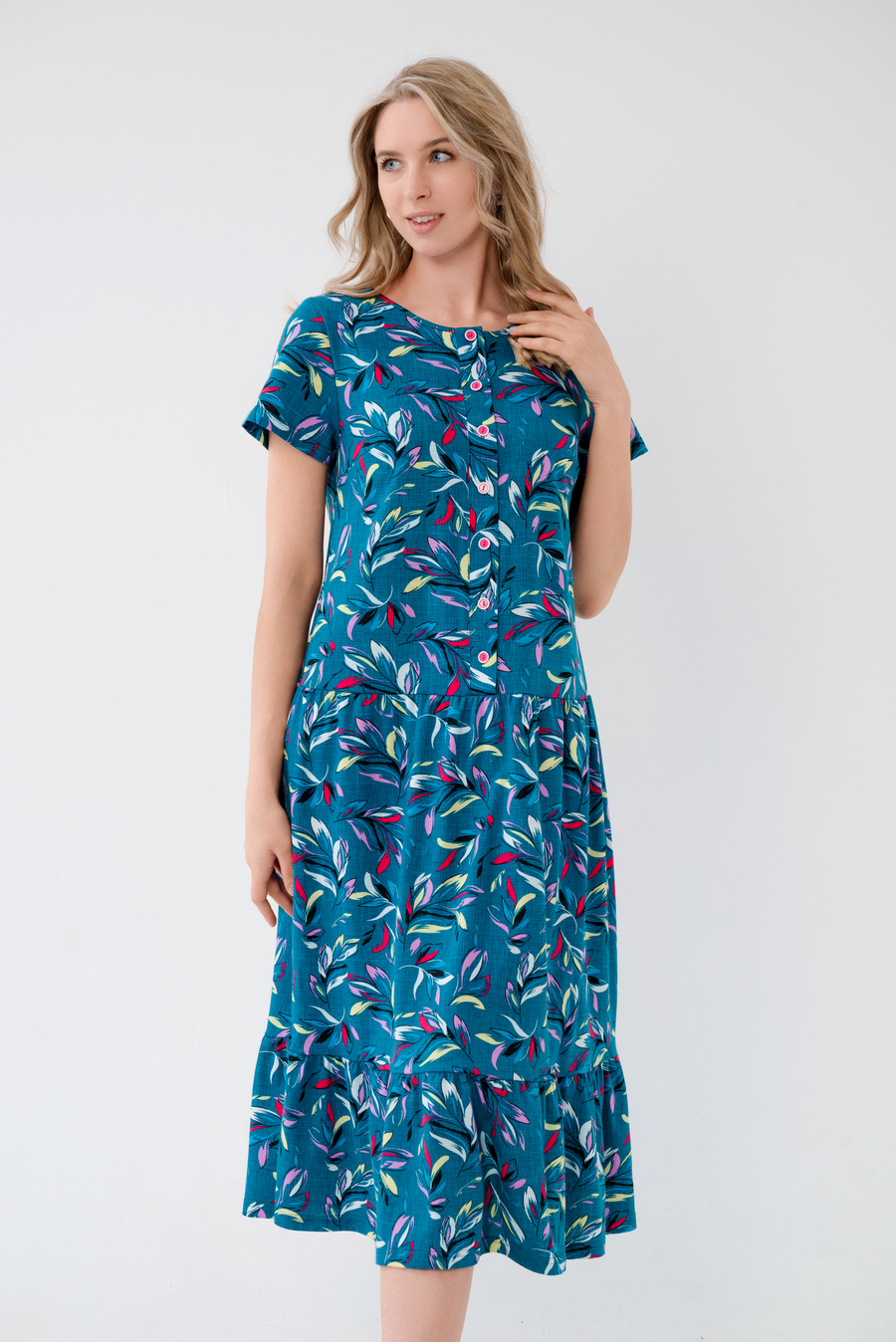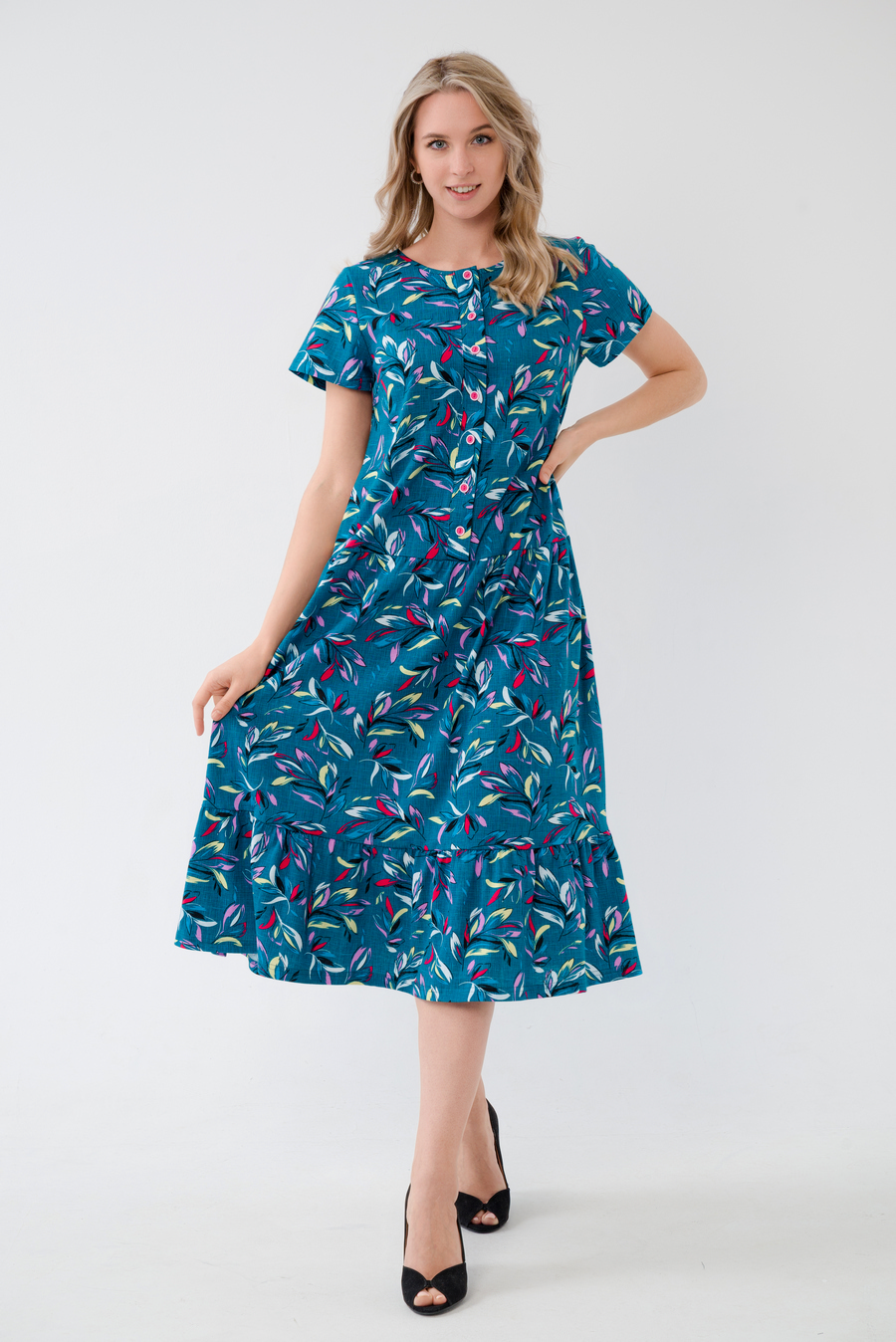 Платье женское из кулирки Кармелита веточка изумруд