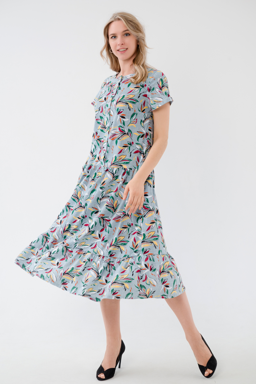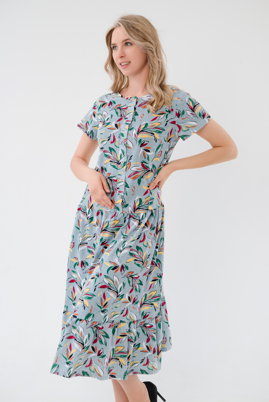 Платье женское из кулирки Кармелита веточка олива
