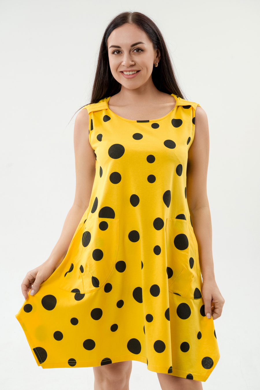 Платье женское из кулирки Кэтрин горох на желтом макси