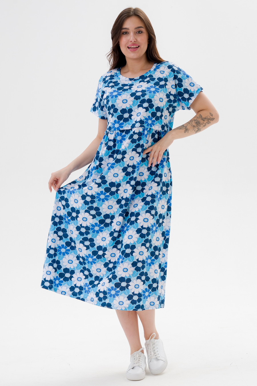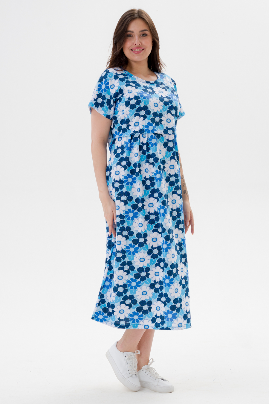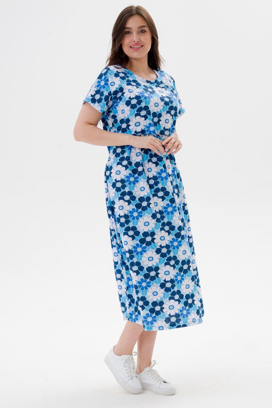 Платье женское из кулирки Миранда голубая ромашка