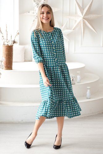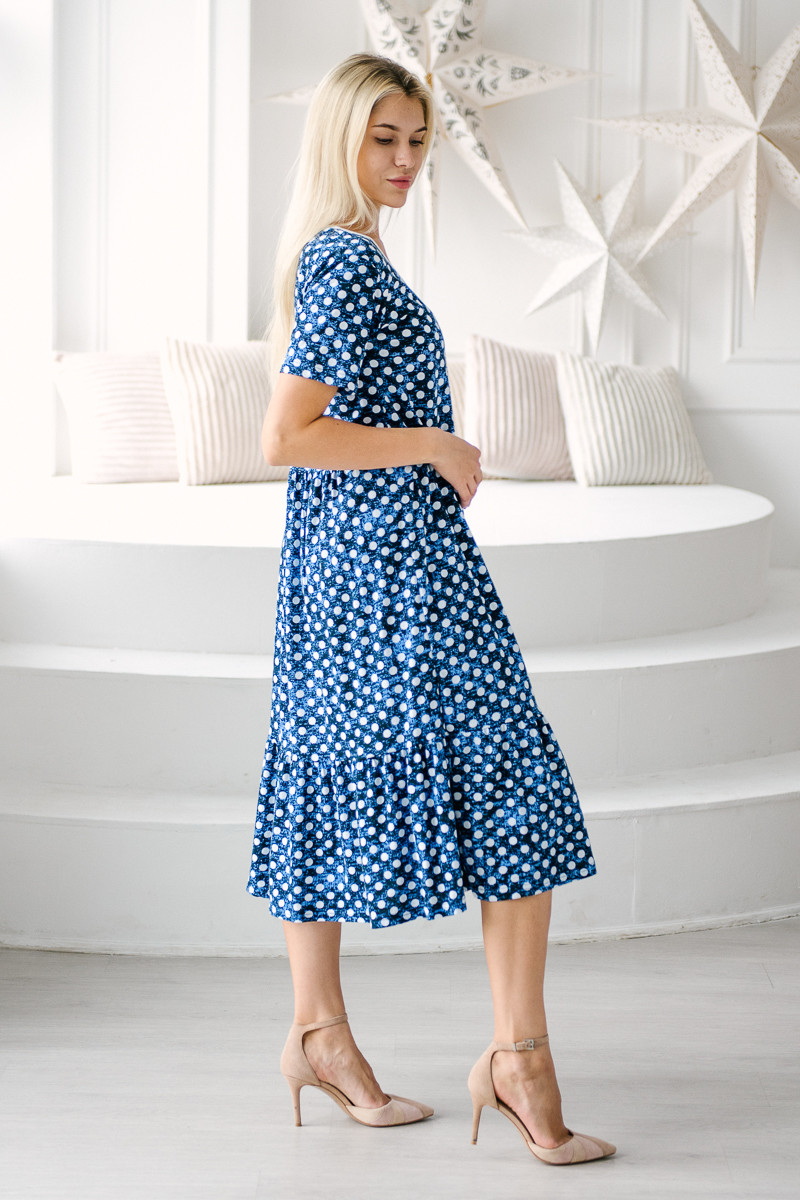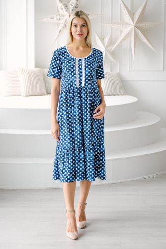 Платье женское из кулирки с кружевом Шарлиз темно-синий