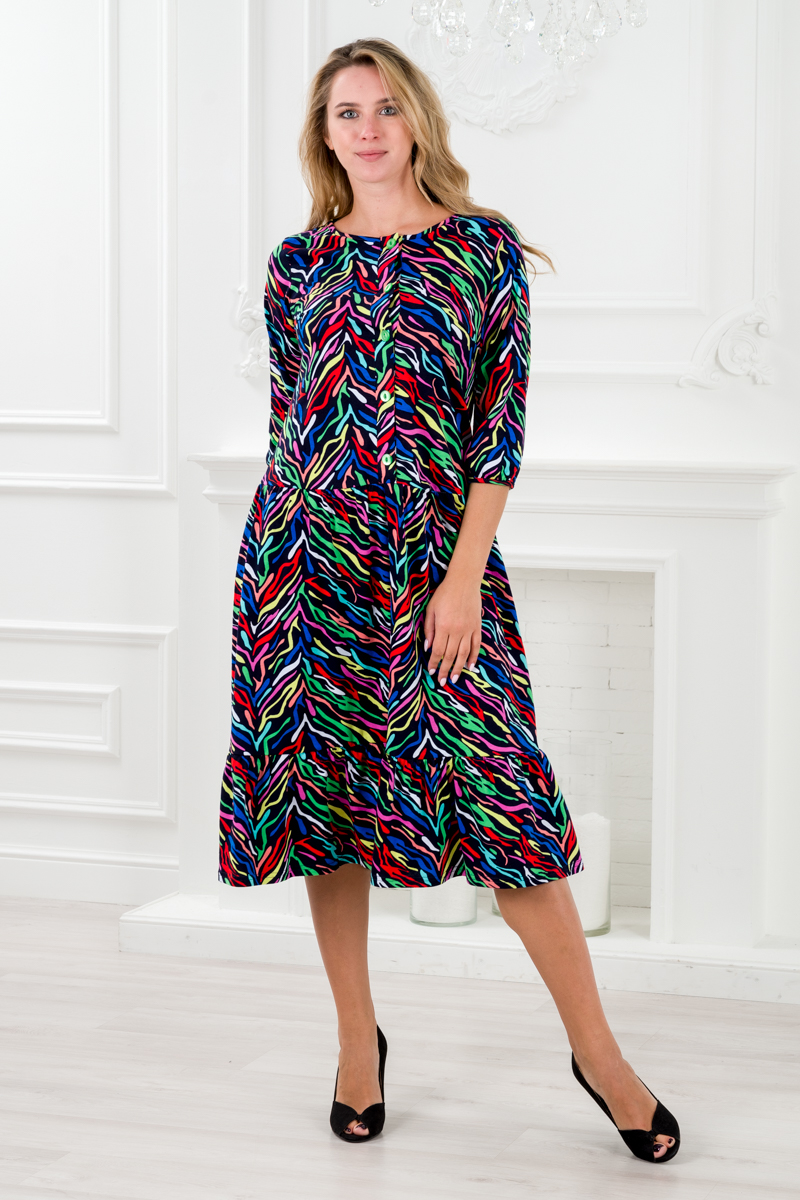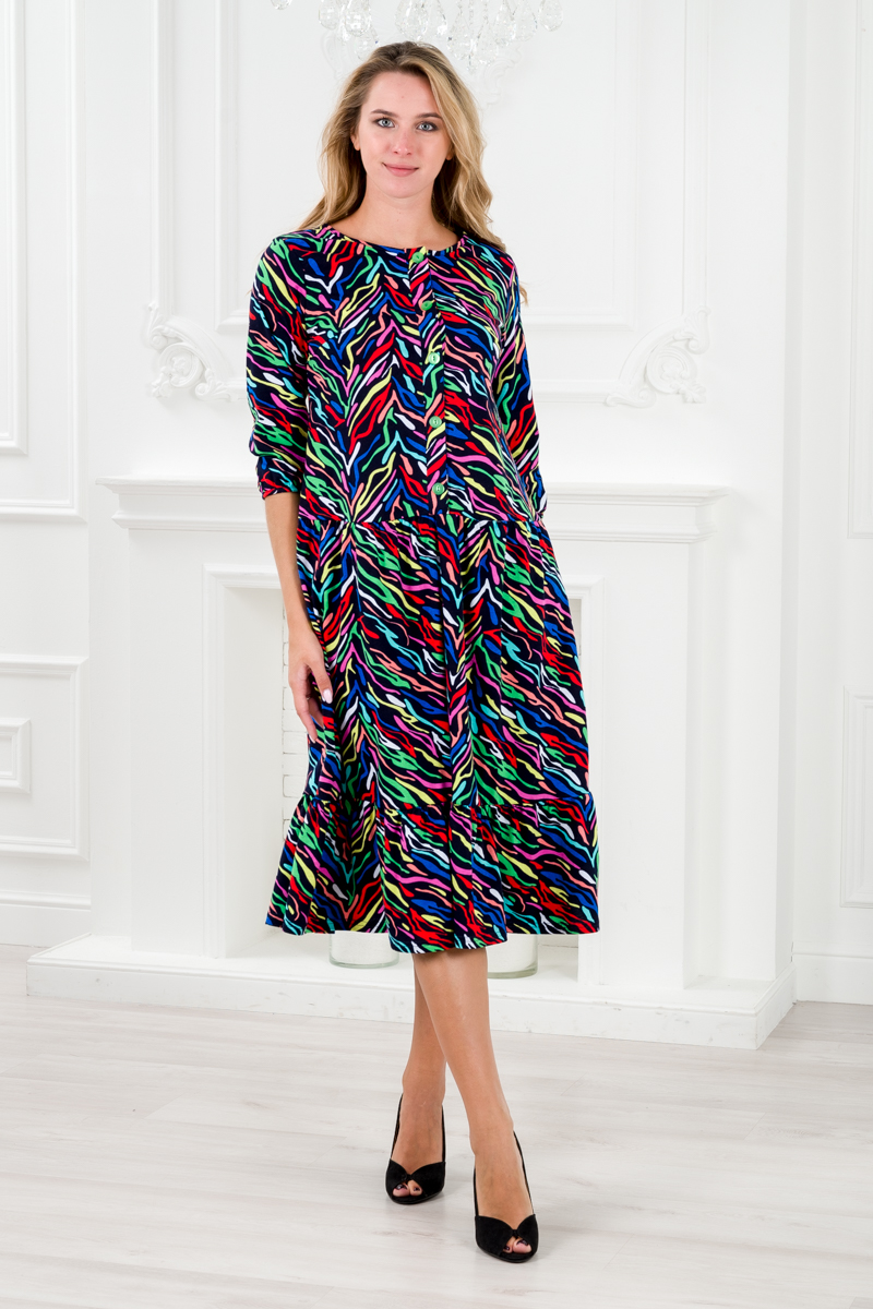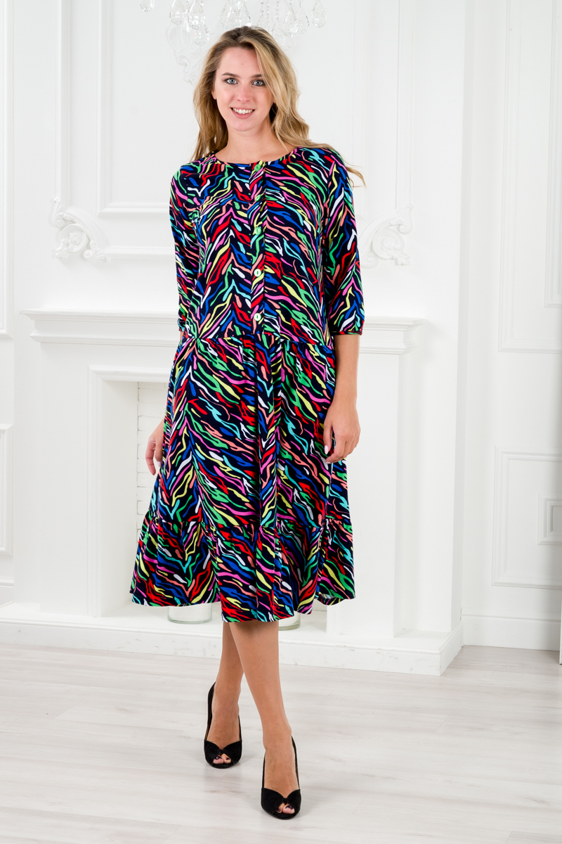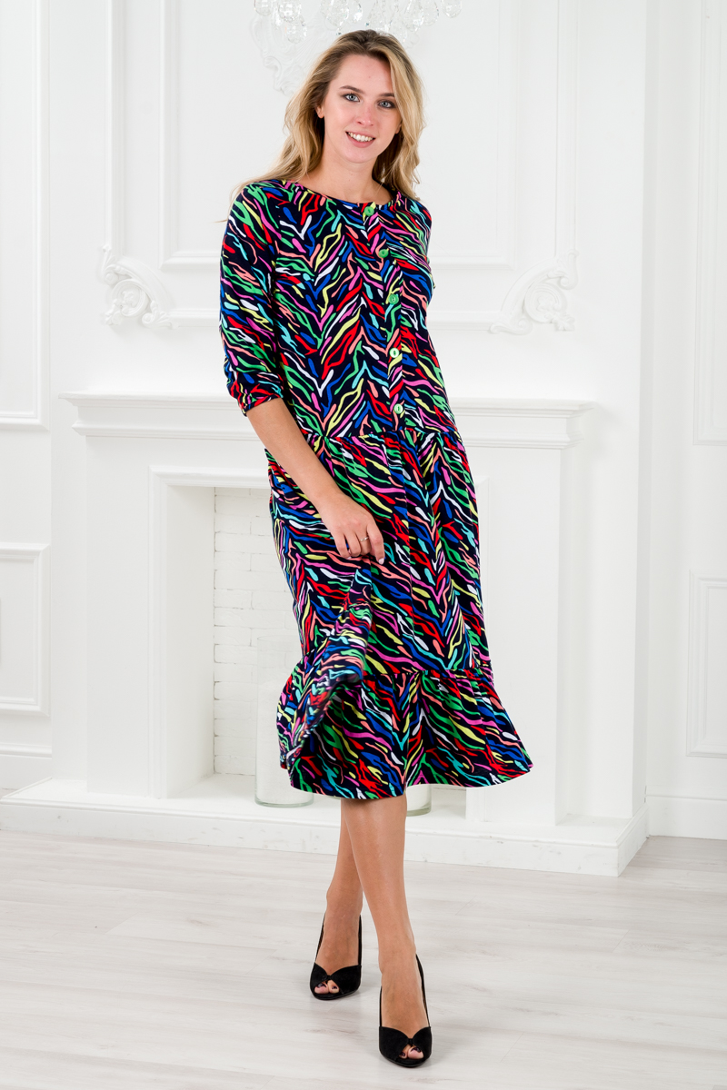 Платье женское из кулирки Софи цветные полосы
