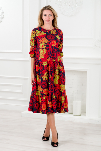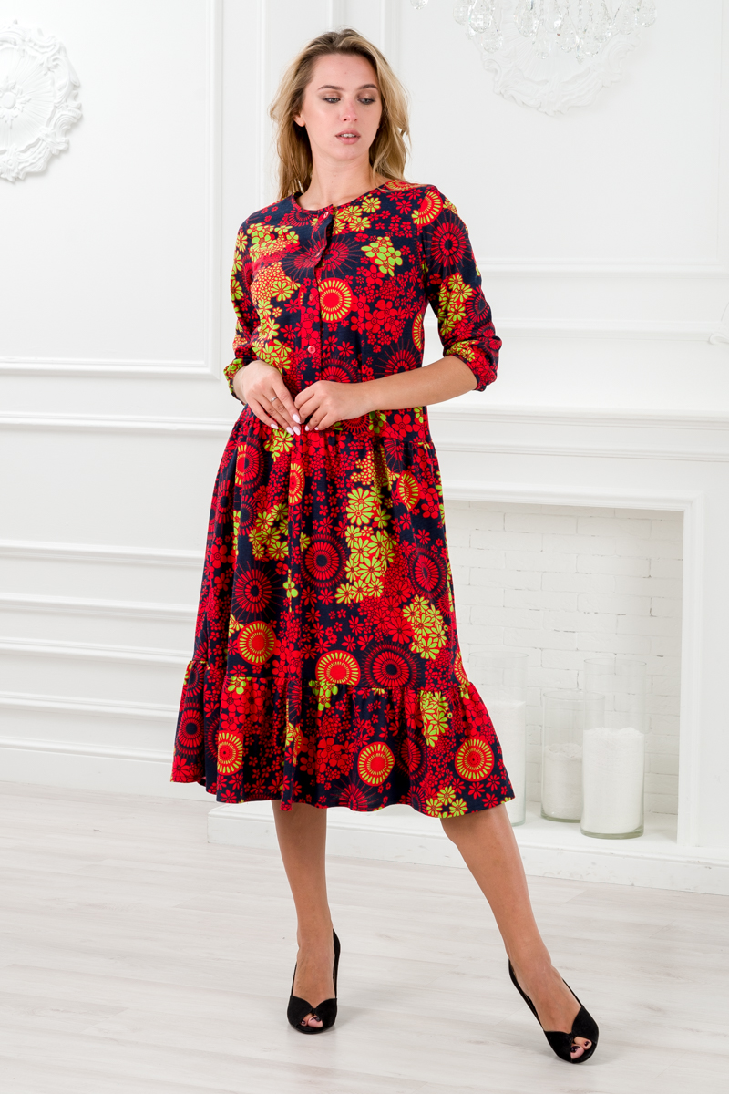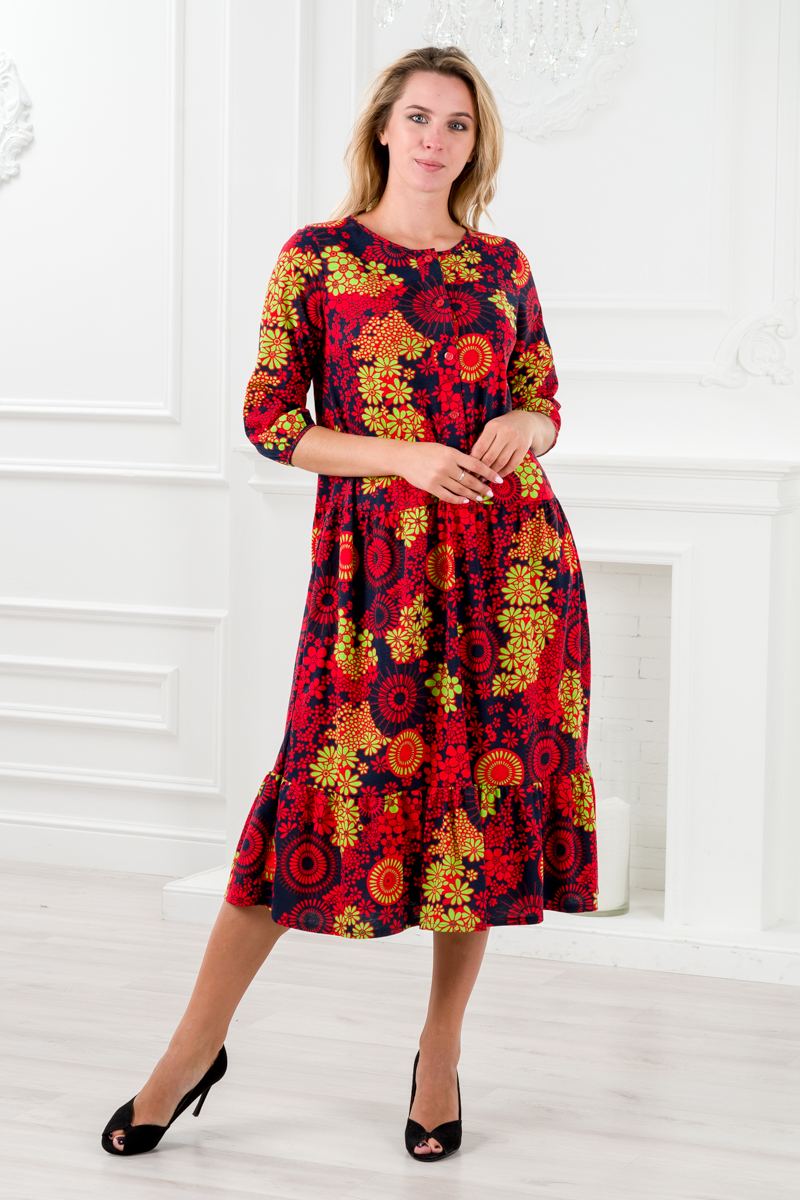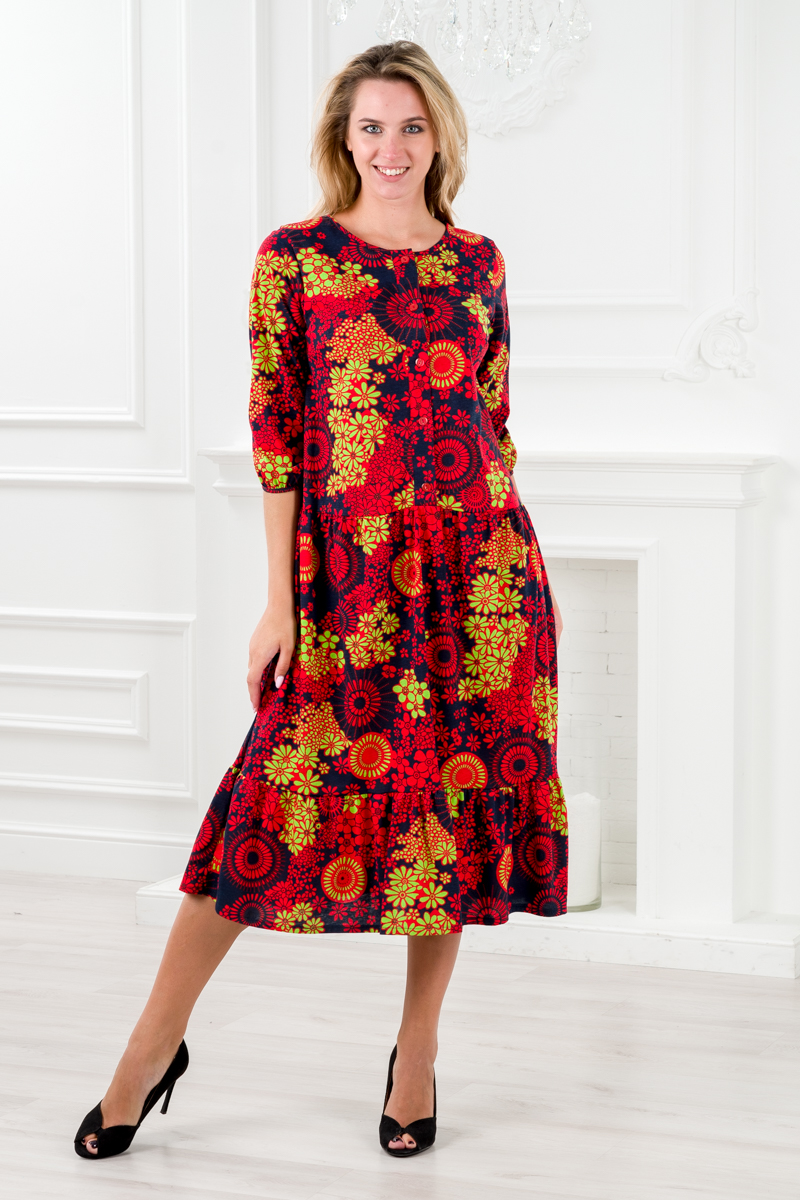 Платье женское из кулирки Софи цветочный калейдоскоп