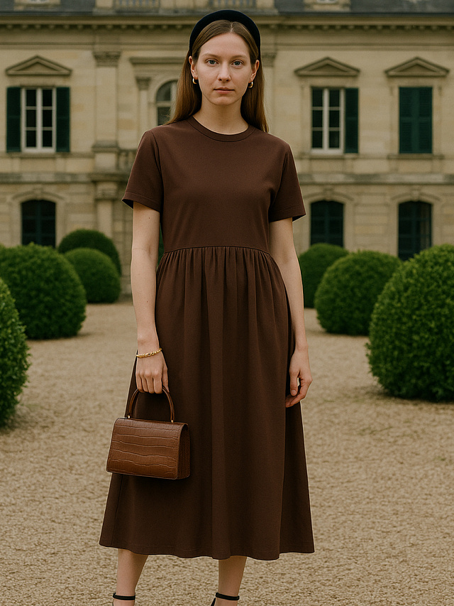 Женское платье свободного силуэта — элегантный и удобный вариант для повседневного гардероба, сочетающий комфорт, стиль и универсальность. Изделие выполнено из натурального хлопка, который отличается мягкостью, воздухопроницаемостью и приятными тактильными ощущениями. Хлопок позволяет коже дышать, создавая ощущение легкости и комфорта даже в жаркую погоду. Круглая горловина с обтачкой из рибаны обеспечивает аккуратную посадку, добавляя эластичности и удобства при носке. Слегка спущенное плечо и углубленная пройма придают расслабленный стиль, делая платье подходящим для повседневного образа. Короткие рукава добавляют легкость и делают модель идеальной для летнего сезона, обеспечивая свободу движений и комфорт. Отрезной крой по талии подчеркивает силуэт, а присборенный и расширяющийся к низу фасон создает легкость, женственность и элегантность в образе. Длина миди делает платье универсальным, подходящим как для прогулок, так и для более нарядных случаев. Прекрасный выбор для тех, кто ценит удобство, натуральные ткани и стильные детали!