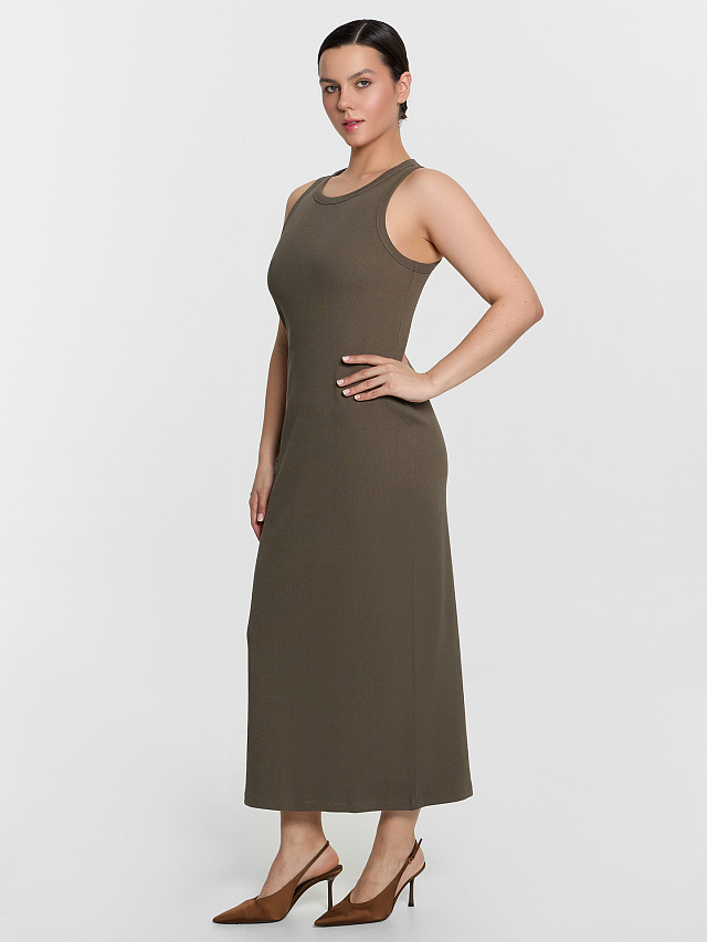 Женское платье в рубчик — идеальный выбор для летнего сезона! Прилегающий силуэт подчеркивает фигуру, создавая элегантный и женственный образ. Мягкий трикотажный материал рибана обеспечивает комфортную посадку, приятные тактильные ощущения и отличную эластичность, позволяя платью красиво ложиться по форме тела. Круглая горловина добавляет классический акцент, оставаясь универсальной и удобной. Длина миди делает платье стильным и практичным, позволяя носить его как в повседневных образах, так и на особенные случаи. Отлично сочетается с летней обувью, аксессуарами и легкими накидками, создавая свежий и выразительный аутфит.