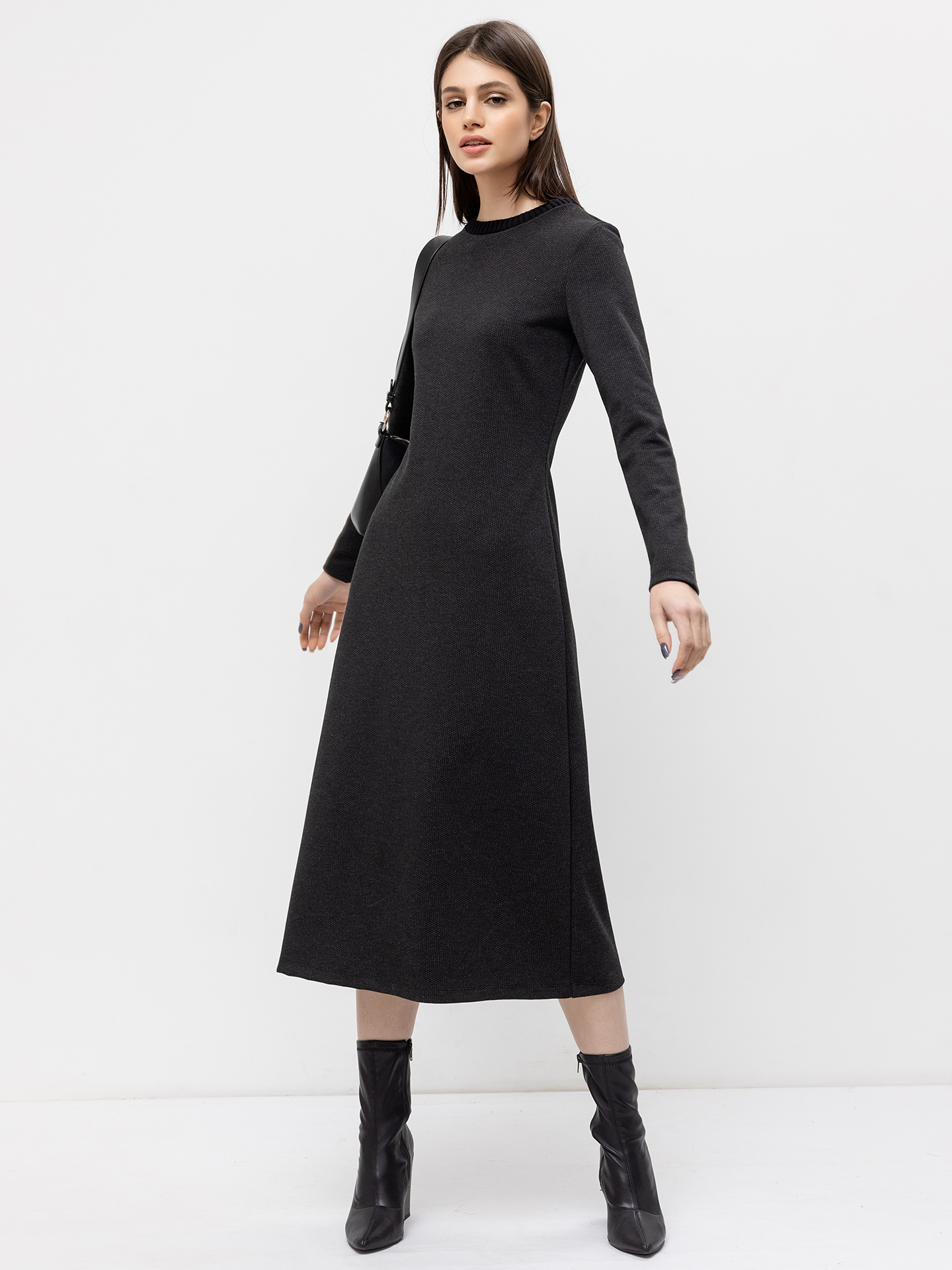 Платье женское миди из высококачественного материала. Имеет прилегающий силуэт, сшито из трикотажного полотна академик. Горловина круглой формы из довяза. Рукав втачной, длинный, узкий. Платье к низу слегка расширяется. Длина ниже колена. Материал платья плотный, но в то же время отлично держит форму. Теплое и удобное платье, которое отлично подойдет для осенне-зимнего сезона. Модный вариант, с которым можно создать массу интересных аутфитов. В таком платье можно отправиться на учебу, работу, пойти на свидание или праздничное мероприятие. Изделие можно комбинировать с разными аксессуарами и элементами гардероба, создавая каждый раз уникальный и запоминающийся образ. Надевая это платье, вы, несомненно, привлечете внимание всех окружающих, своим безупречным вкусом и будете выглядеть невероятно стильной. Откройте для себя широкий ассортимент наших платьев — это модели в различных цветах и вариантах длины. В них вы будете выглядеть элегантно и женственно, они украсят вашу фигуру, подчеркнут все ее достоинства. Каждое платье из нашей коллекции является уникальным и добавит свой неотразимый шарм вашему образу. Выбирайте и сочетайте их с обувью и аксессуарами, создавая стильный и современ
