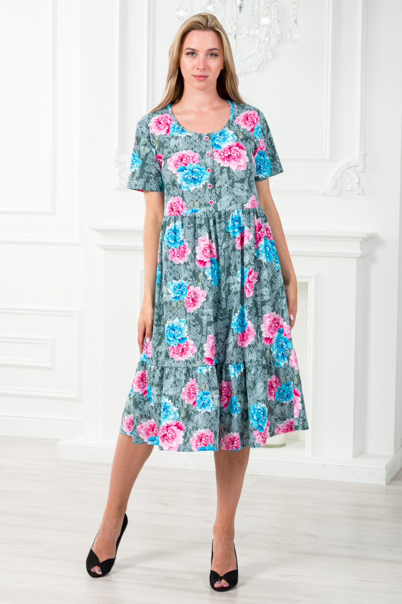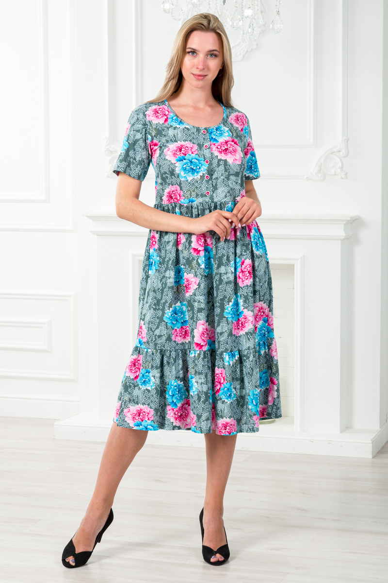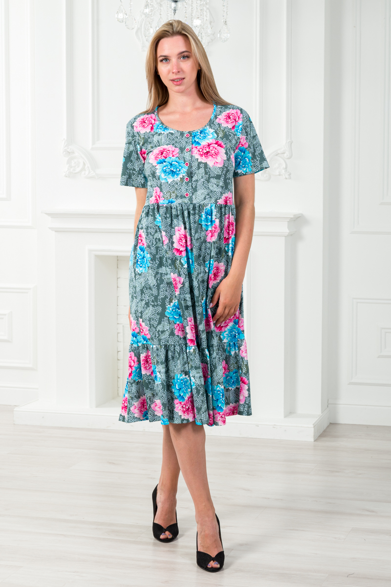 Платье женское с рукавами из кулирки Шейла пион на сером