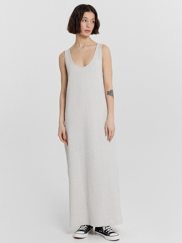 Дополните свой гардероб универсальным платьем на широких бретелях свободного силуэта, которое идеально подойдет для создания стильных и комфортных образов! Длина макси и свободный крой дарят ощущение лёгкости и непринуждённости, делая это платье подходящим для повседневных прогулок или расслабленного отдыха. Глубокая круглая горловина и углубленные проймы добавляют элегантности и создают гармоничный дизайн. Изделие выполнено из натуральной хлопковой кулирки, которая отличается мягкостью, воздухопроницаемостью и дарит ощущение комфорта даже в жаркие дни. Обработка нижних срезов швом вподгибку обеспечивает аккуратность и долговечность изделия. Такое платье можно носить как самостоятельный элемент гардероба, подчеркивая ваш индивидуальный стиль, или комбинировать с футболками, лонгсливами и другими аксессуарами для создания уникальных многослойных образов.